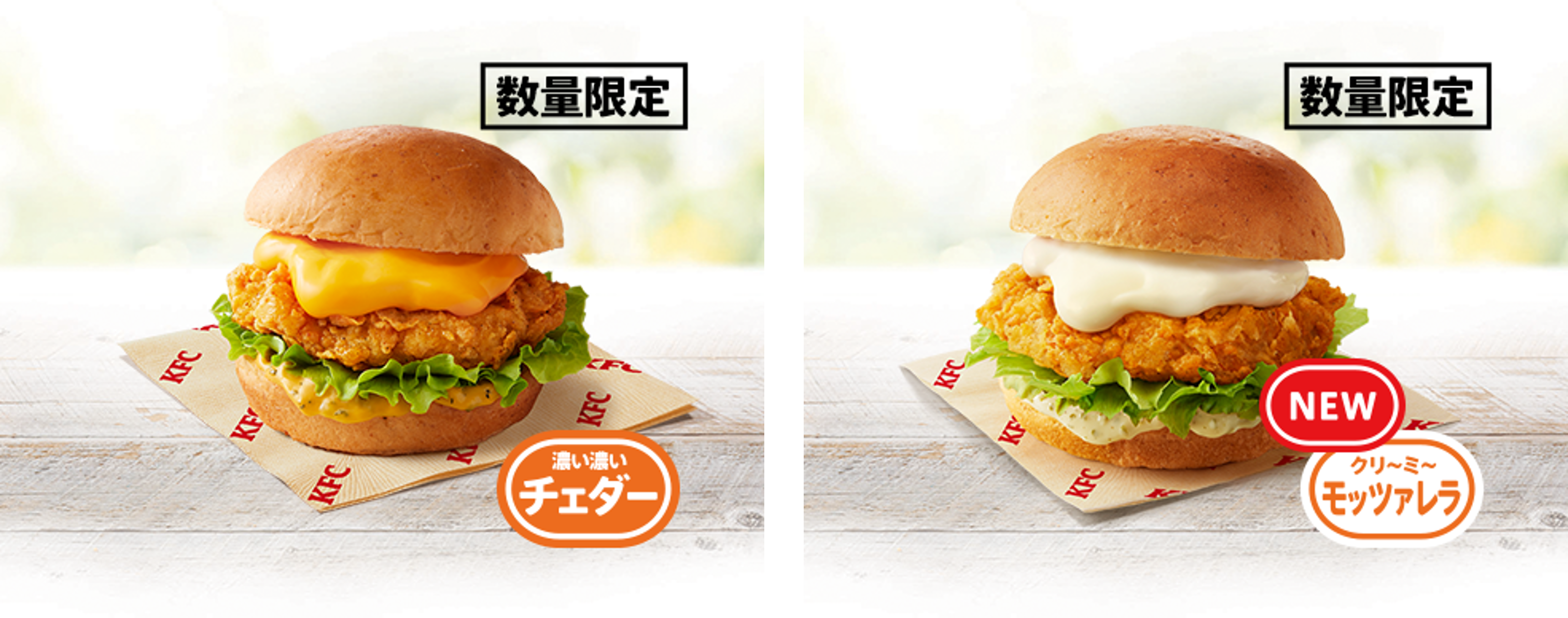 ■シリーズ定番のチェダーチーズのバーガーに加えて、今年はモッツァレラチーズを使用したバーガーが新登場!