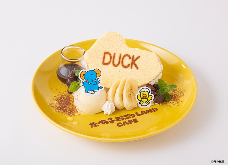 DUCKのビスケットをイメージしたふわふわのスポンジにバナナやカスタードクリームを挟み、チョコレートソースを添えた東京限定のスイーツ!