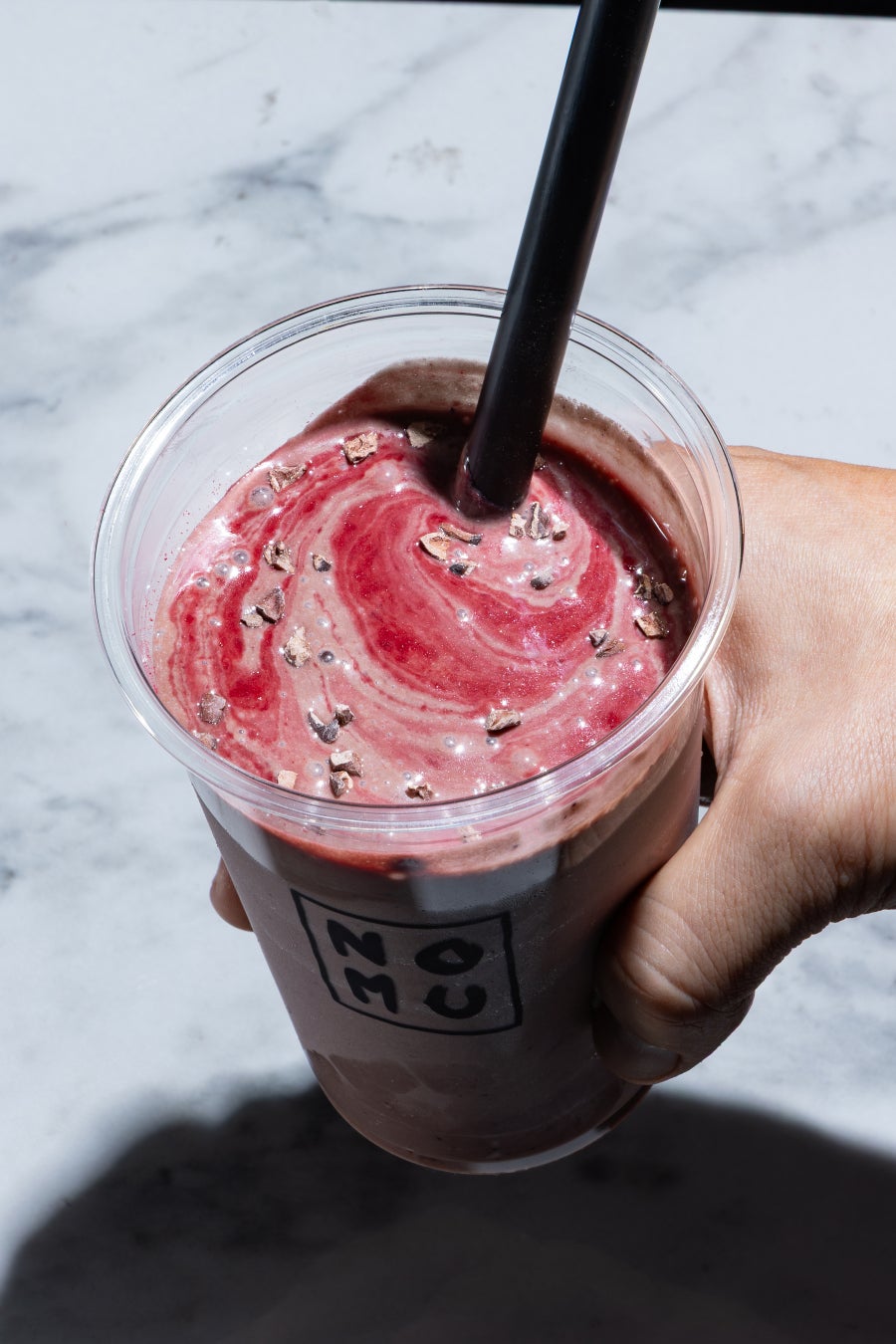 純ココアのほろ苦さに、ベリーの甘酸っぱさ、バナナとデーツの自然な甘みを重ねた濃厚なスムージーです。ココナッツミルクとアーモンドミルク、そしてギリシャヨーグルトでまろやかに仕上げ、アガベシロップで後味をやさしく整えました。仕上げにカカオニブとフランボワーズパウダーを振りかけ、香ばしさと華やかな酸味をプラスした、NOMU aoyamaの季節限定スムージーです。