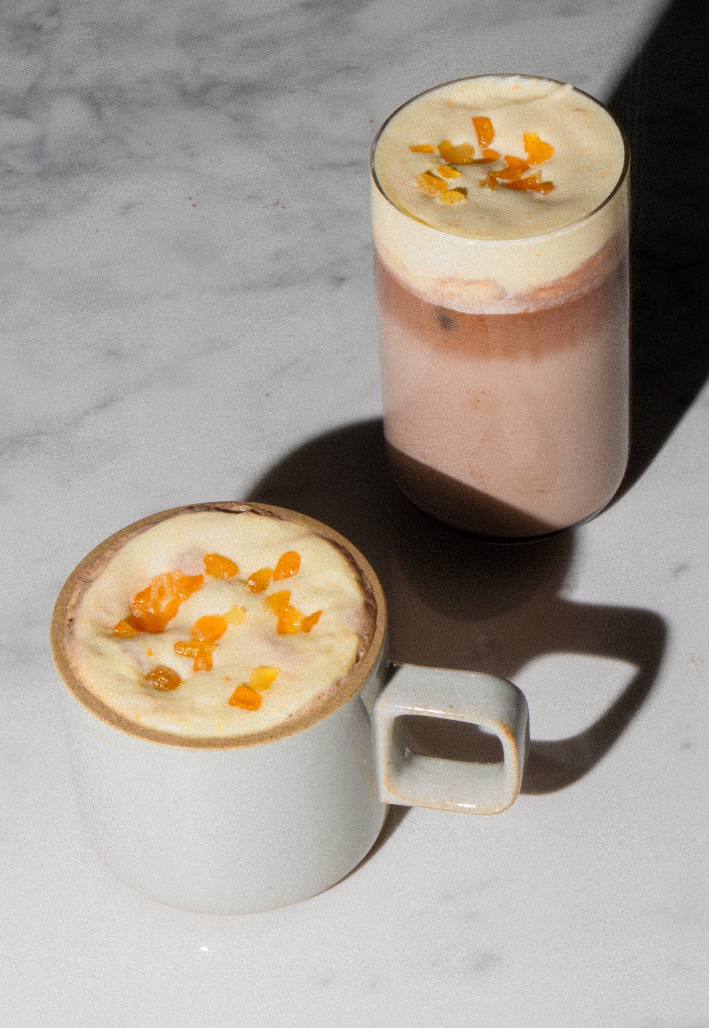 冬にぴったりな”オレンジチョコレート”。濃厚なチョコレートにフレッシュなオレンジの爽やかさを加え、仕上げにオレンジピールのほろ苦さと香りを添えました。口に運ぶたびに上品な甘さと柑橘の余韻がふんわりと広がる一杯です。