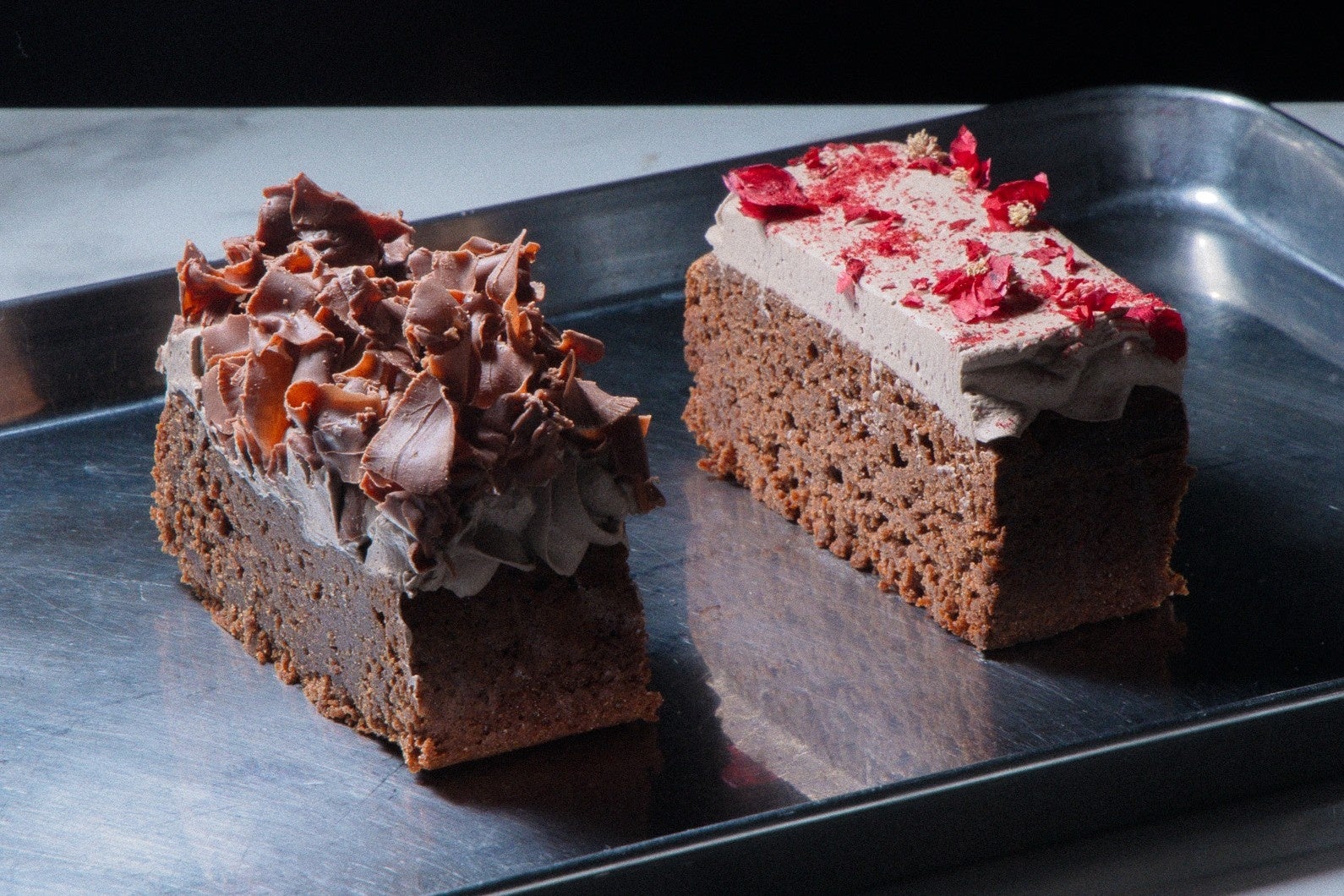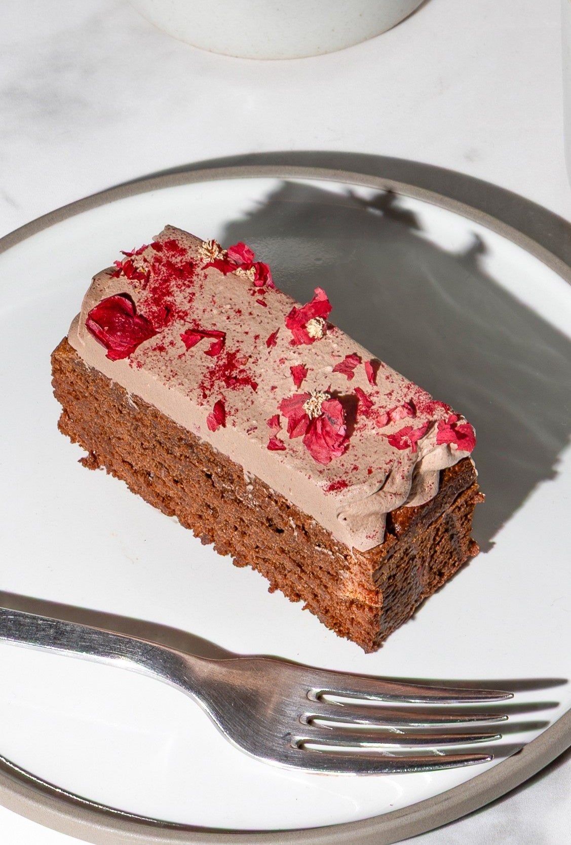 濃厚なチョコレートのコクを丁寧に引き出した、リッチで贅沢な味わいのオリジナルチョコレートケーキです。アーモンドの香ばしさとクリームの優しい甘さが、しっとりとなめらかな口当たりを引き立てます。なめらかなホイップクリームでアイシングし、色鮮やかなペタルとラズベリーパウダーをトッピング。気分も華やぐとっておきのスイーツです。