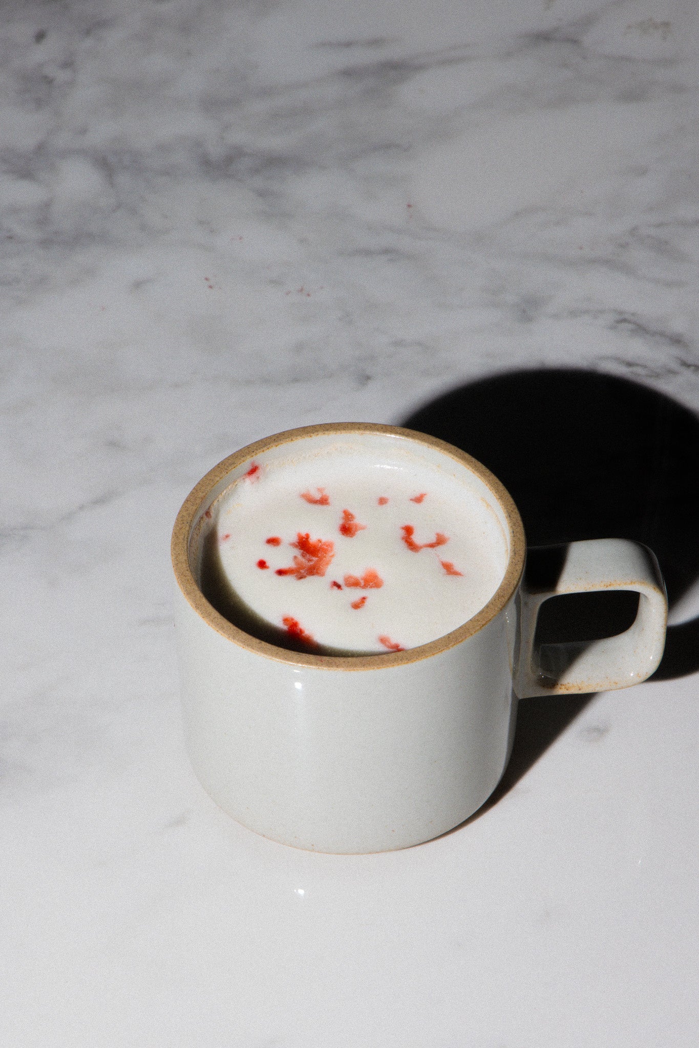 バニラの香りとまろやかな味わいが特徴のA.C.Perch’s(A.C.パークス)のルイボスティーに、ストロベリーのフレッシュな甘酸っぱさを重ね、心地よい味わいが広がります。仕上げにクリームで全体をまろやかに仕立て、ストロベリーゼストをちりばめた上品な一杯です。見た目も愛らしく、ホッとするNOMU azabudai限定ドリンクです。