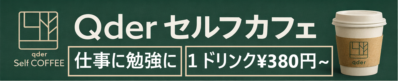 大阪府東大阪市・長瀬にオープンした「Qder(キューダー)セルフカフェ 長瀬店」は、この“場所の問題”に正面から向き合った無人カフェだ。学生・社会人・フリーランスに応援しています。