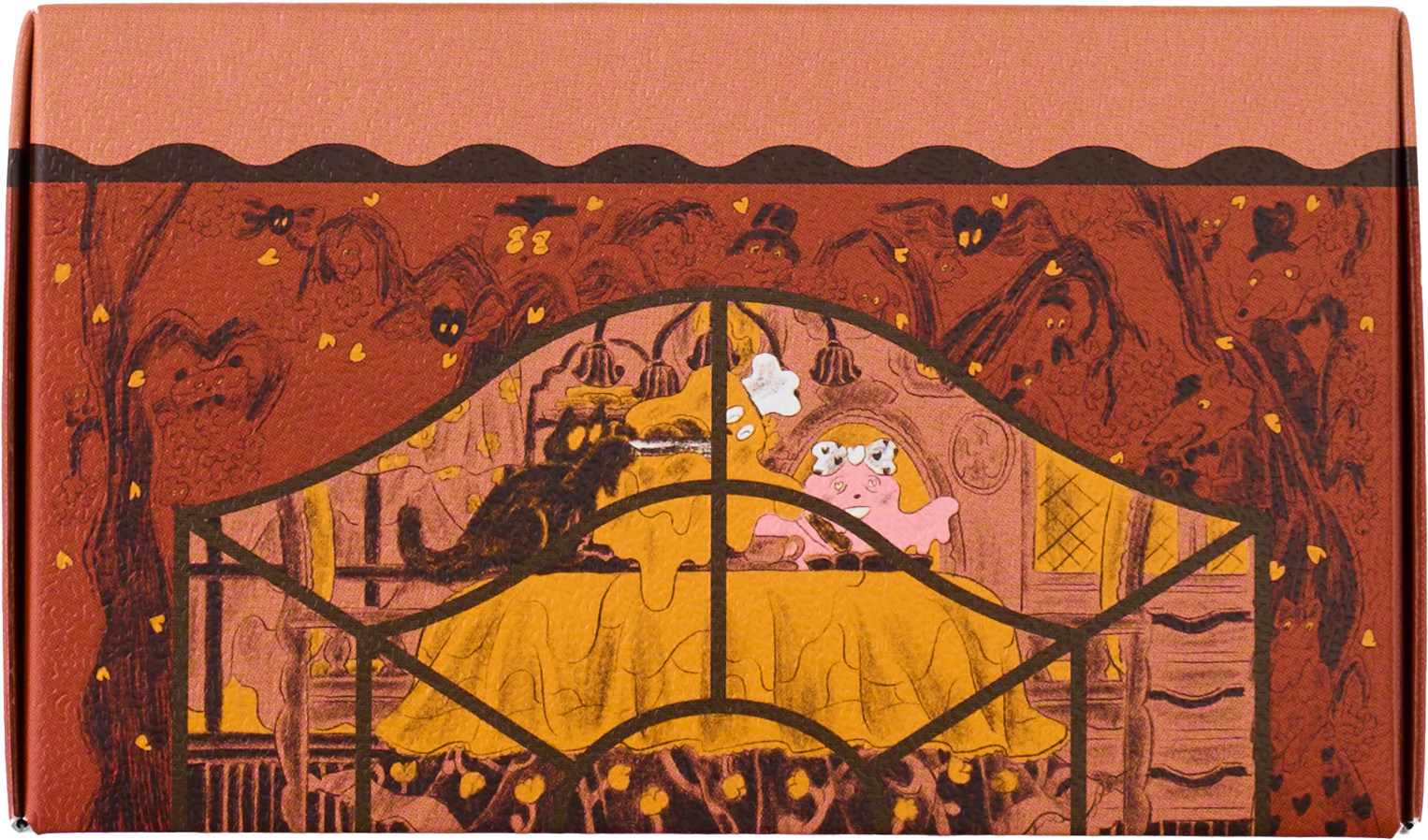 パッケージには、キャラメルオバケと愛猫メルちゃんに加えて”気になるあの子”が登場。3人仲良くキャラメルが入ったお鍋をかき混ぜる様子や、側面には”あの子”に喜んでほしくて、せっせとおもてなしするキャラメルオバケの様子が描かれています。バレンタインやホワイトデー、日頃の感謝を込めたギフトなど、大切な想いをキャラメルゴーストハウスの世界観と一緒に贈りませんか?