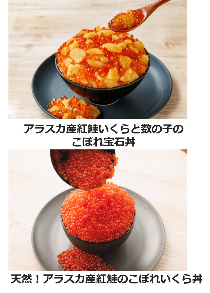 「アラスカシーフードマーケティング協会&極洋」ブースでは、昨年11月の日比谷公園で登場し、大人気となった「アラスカ産紅鮭いくらと数の子のこぼれ宝石丼」を販売します。100%天然で、サステイナブル(持続可能)な漁業によって漁獲されたアラスカ産の高品質な魚卵の美味しさを知ってもらおうと考案されたメニューです。