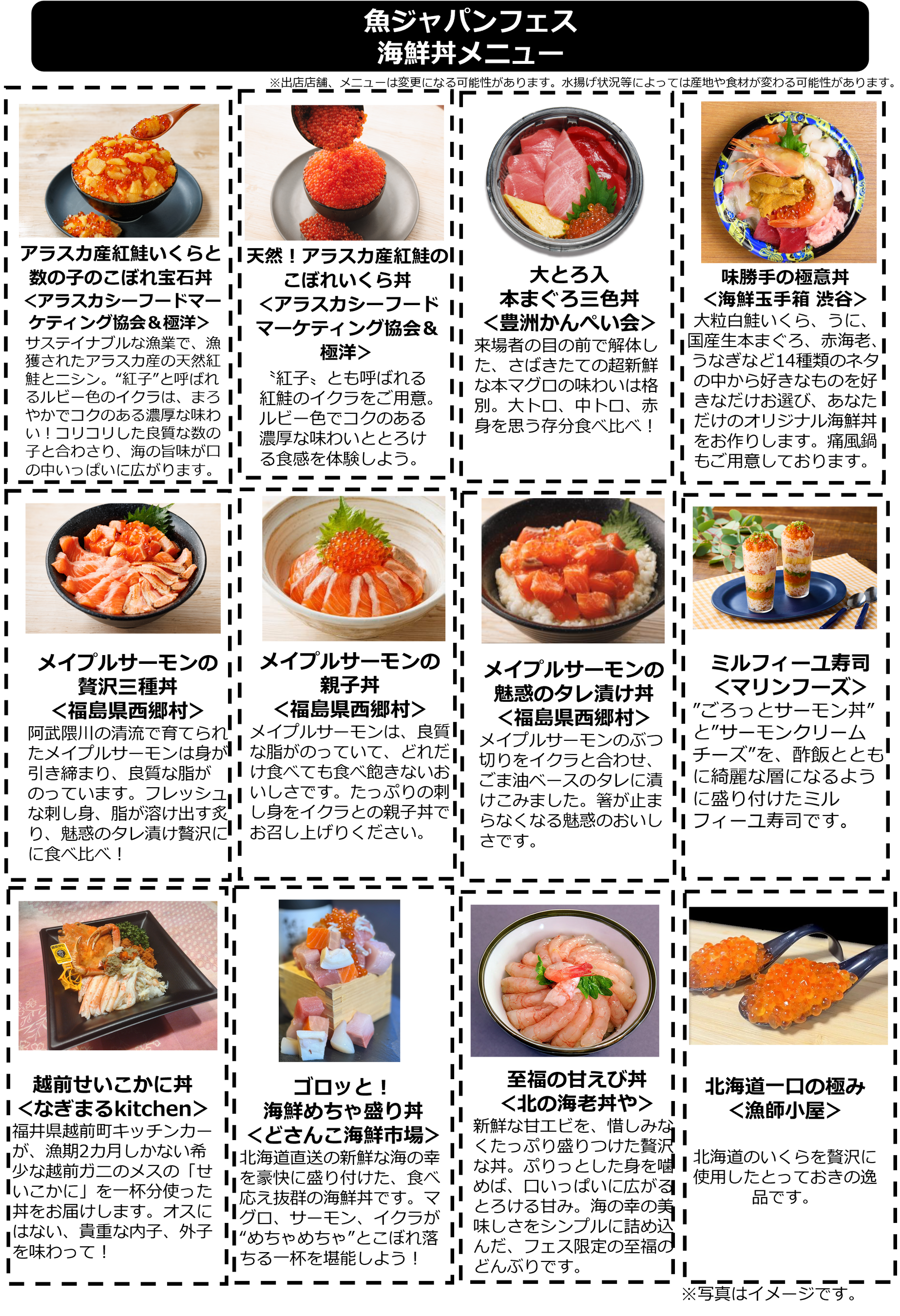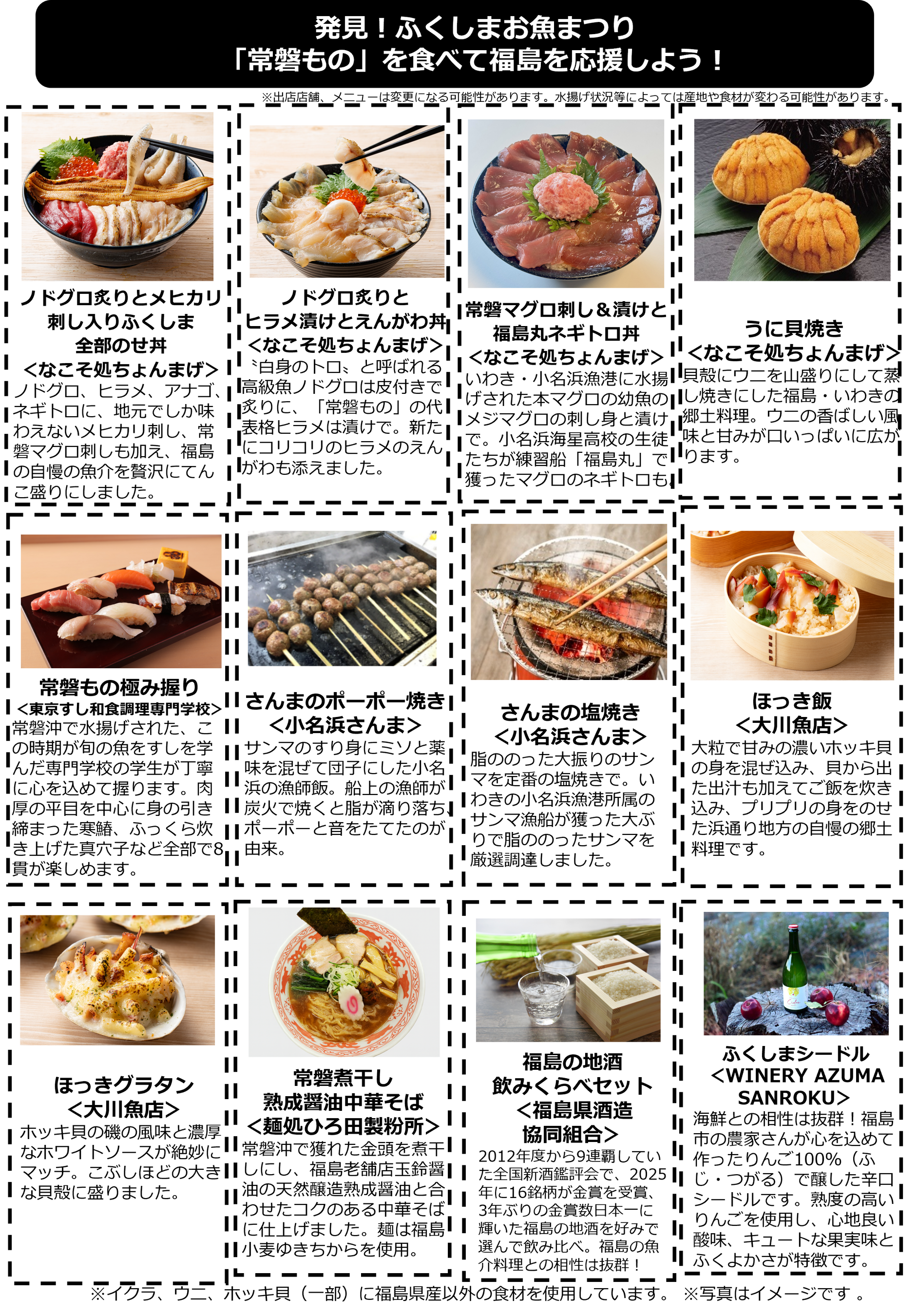 ※イクラ、ウニ、ホッキ貝(一部)に福島県産以外の食材を使用。