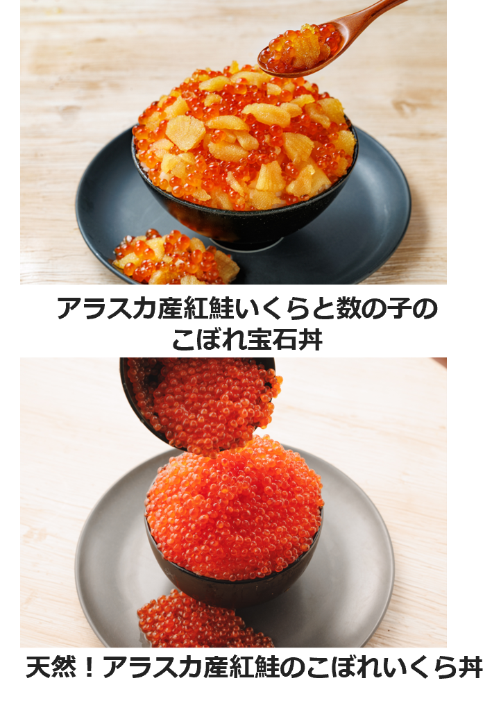 ルビー色のイクラと黄金色の数の子がこぼれ落ちる!