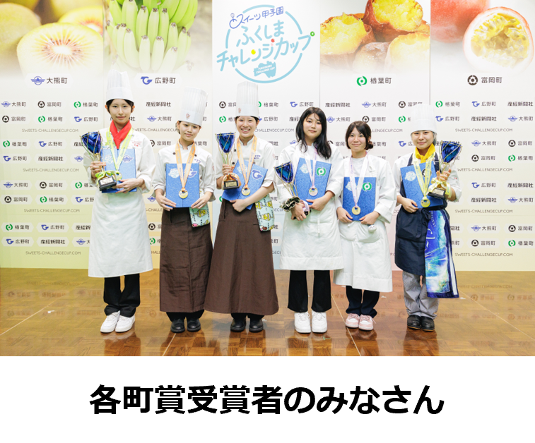 高校生パティシエ日本一を決める「スイーツ甲子園 高校生パティシエNo.1決定戦」(主催:産経新聞社)の姉妹コンテストとして2023年に誕生。4町の特産品の魅力とおいしさを知ってもらい、東日本大震災と原子力災害からの復興を応援しようと、福島県のサッカー施設「Jヴィレッジ」に、厳正なレシピ審査で選ばれた全国の高校生12組が集い、お菓子作りのアイデアと技術を競う決勝大会を8月に開催。大熊町賞、富岡町賞、楢葉町賞、広野町賞を選出。受賞者には、審査員を務めたトップパティシエとコラボし、それぞれの特産品を使ったオリジナルスイーツを考案する副賞を贈呈。