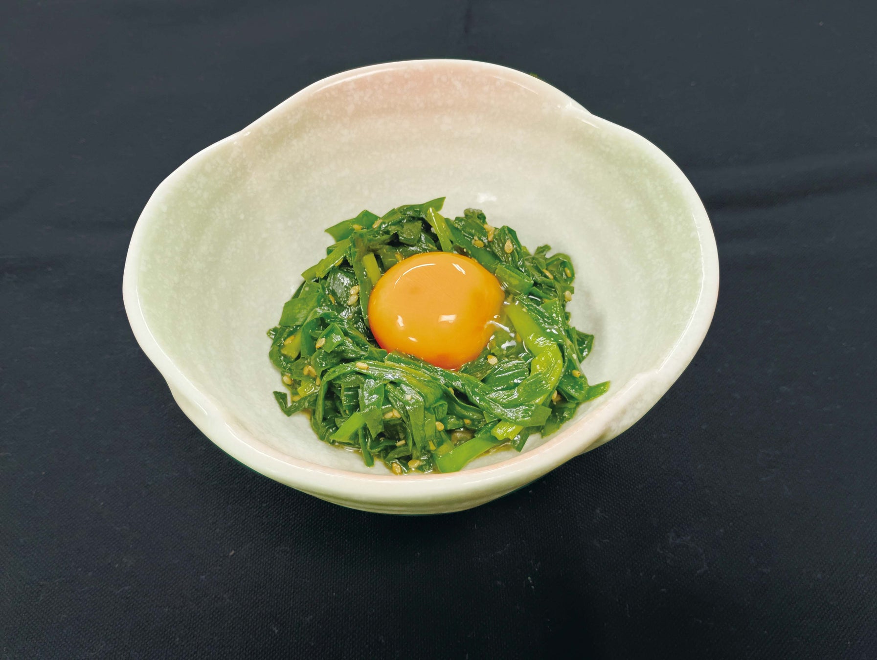 香り豊かなニラを味噌で和えました。卵黄と絡めてお楽しみくださ