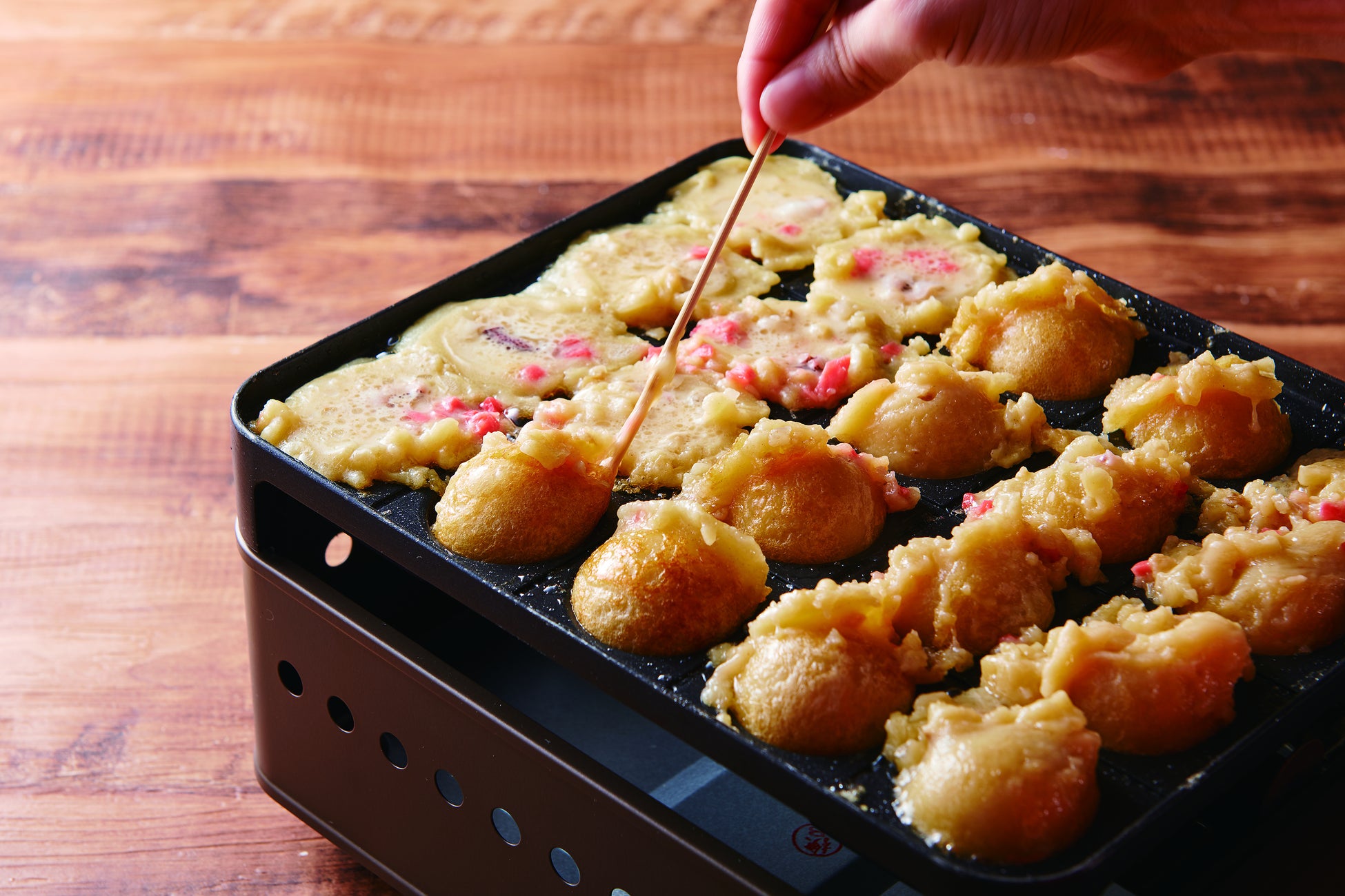 生地に出汁と醤油の味がついており、そのままでも美味しく召し上がれるたこ焼きです。