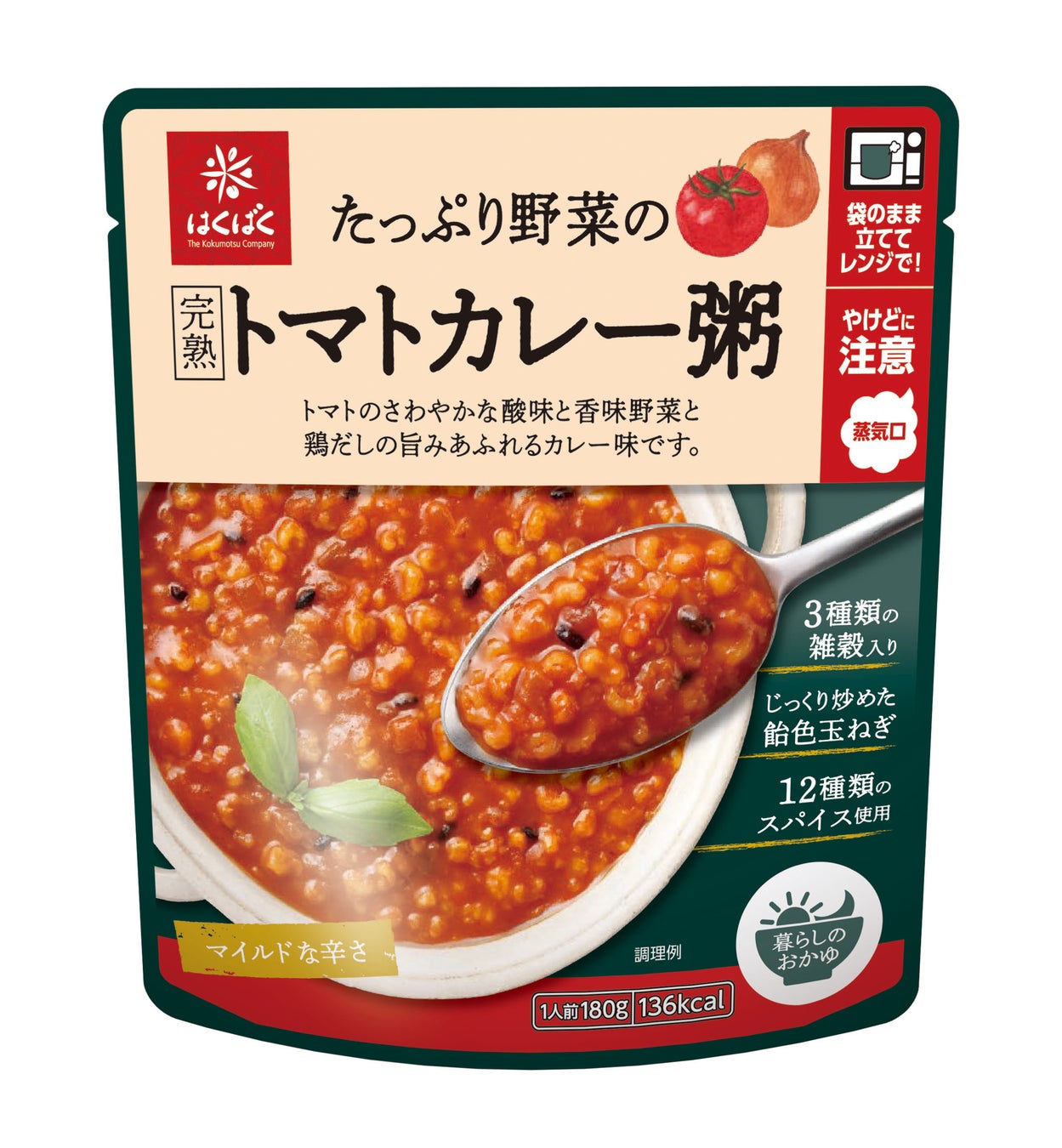 レンジで1分20秒の簡単調理。自立するスタンドパウチを採用し、袋のまま温められるため、お皿に移さずそのまま食べることも可能です。