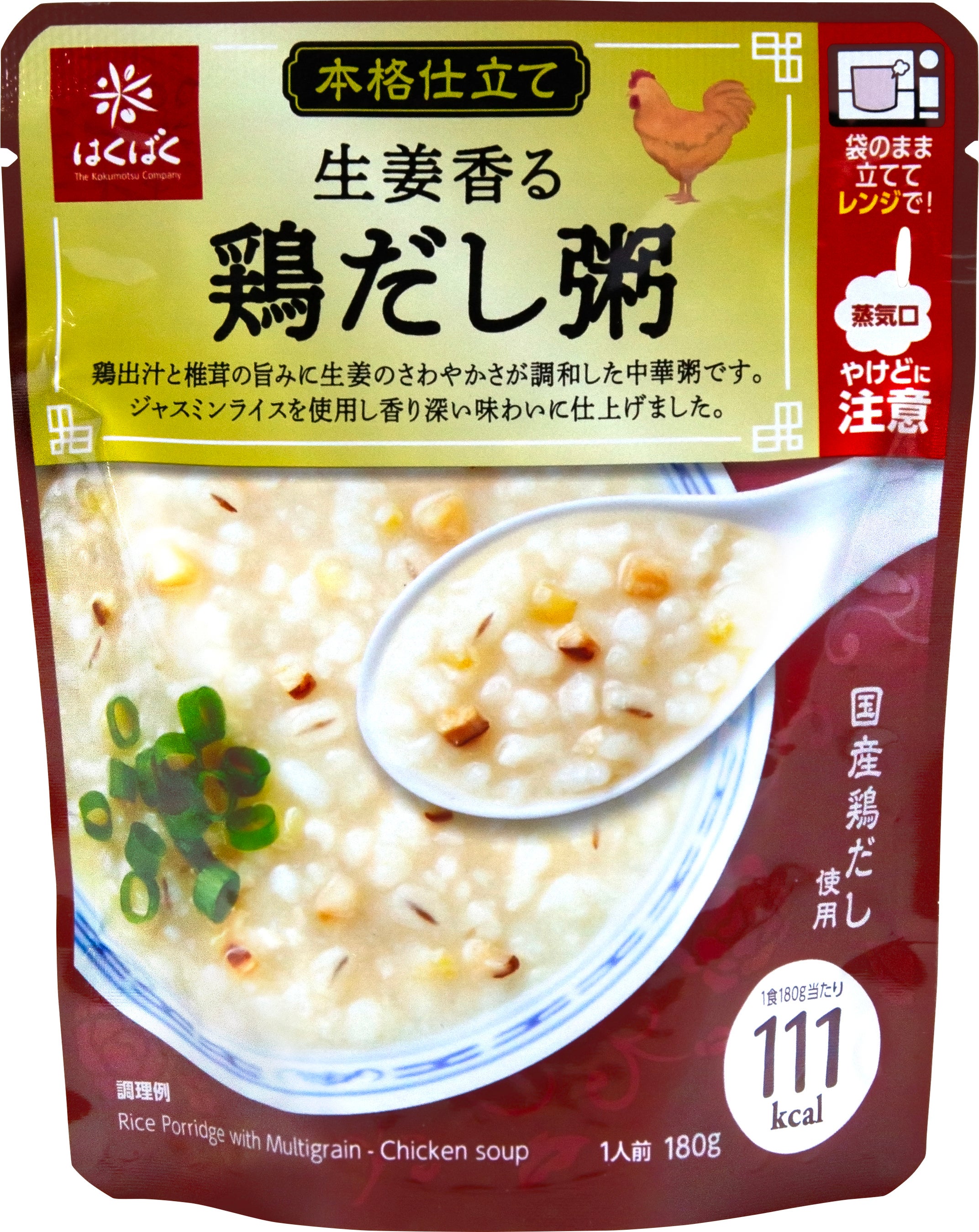 特長 :国産鶏出汁に生姜と椎茸の風味が溶け込む、やさしい旨みの中華粥に仕上げました。