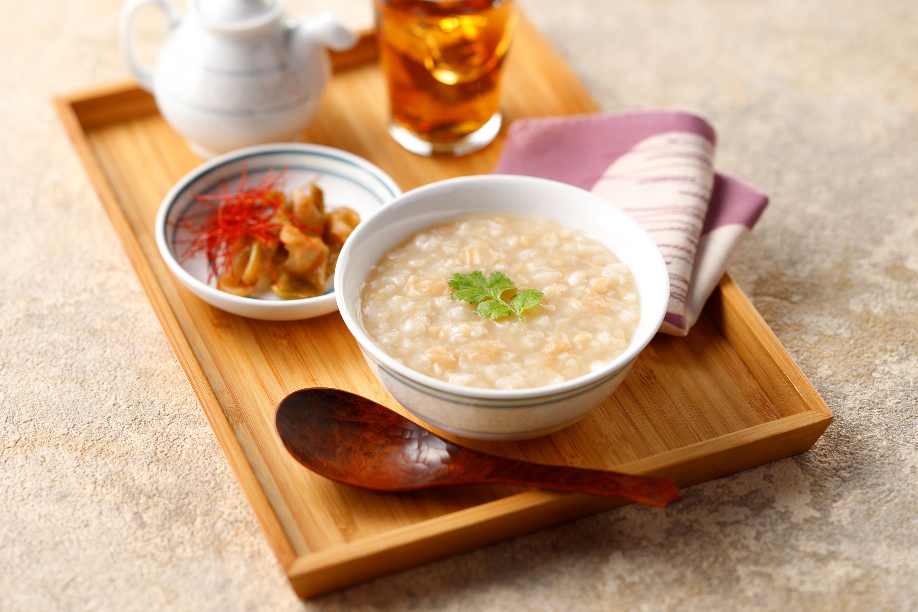 もち麦とジャスミンライスを合わせた、香り深い味わいのおかゆです。