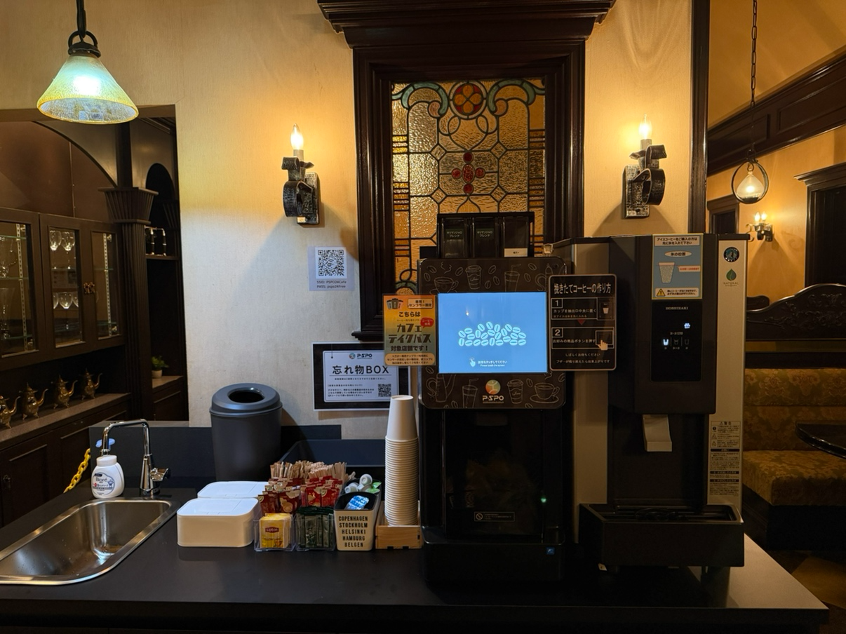 P・SPO 久万ノ台店では、最新型コーヒーマシン「Cafe Mania(カフェマニア)」を導入しています。