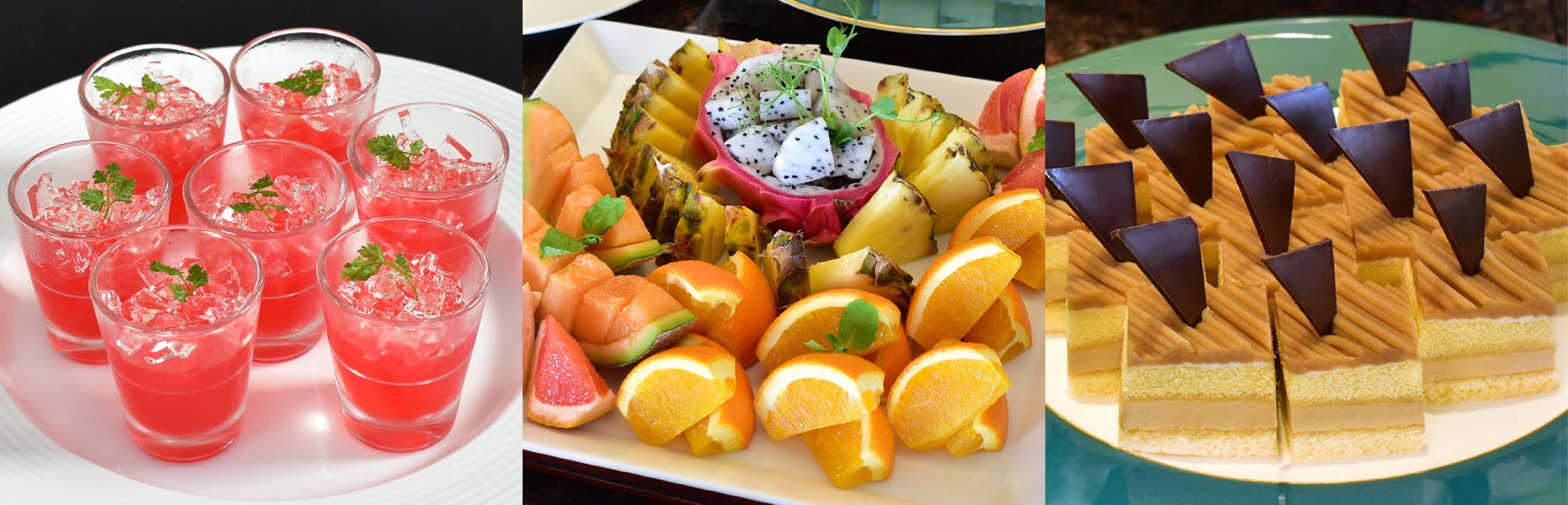 蟹・いくら丼(セルフスタイル)・スイーツ各種・スモークサーモン・本日のピザ・パン・スープ・本日のスパゲッティ・サラダ・カレーライス・アイスクリーム6種・ソフトドリンク等