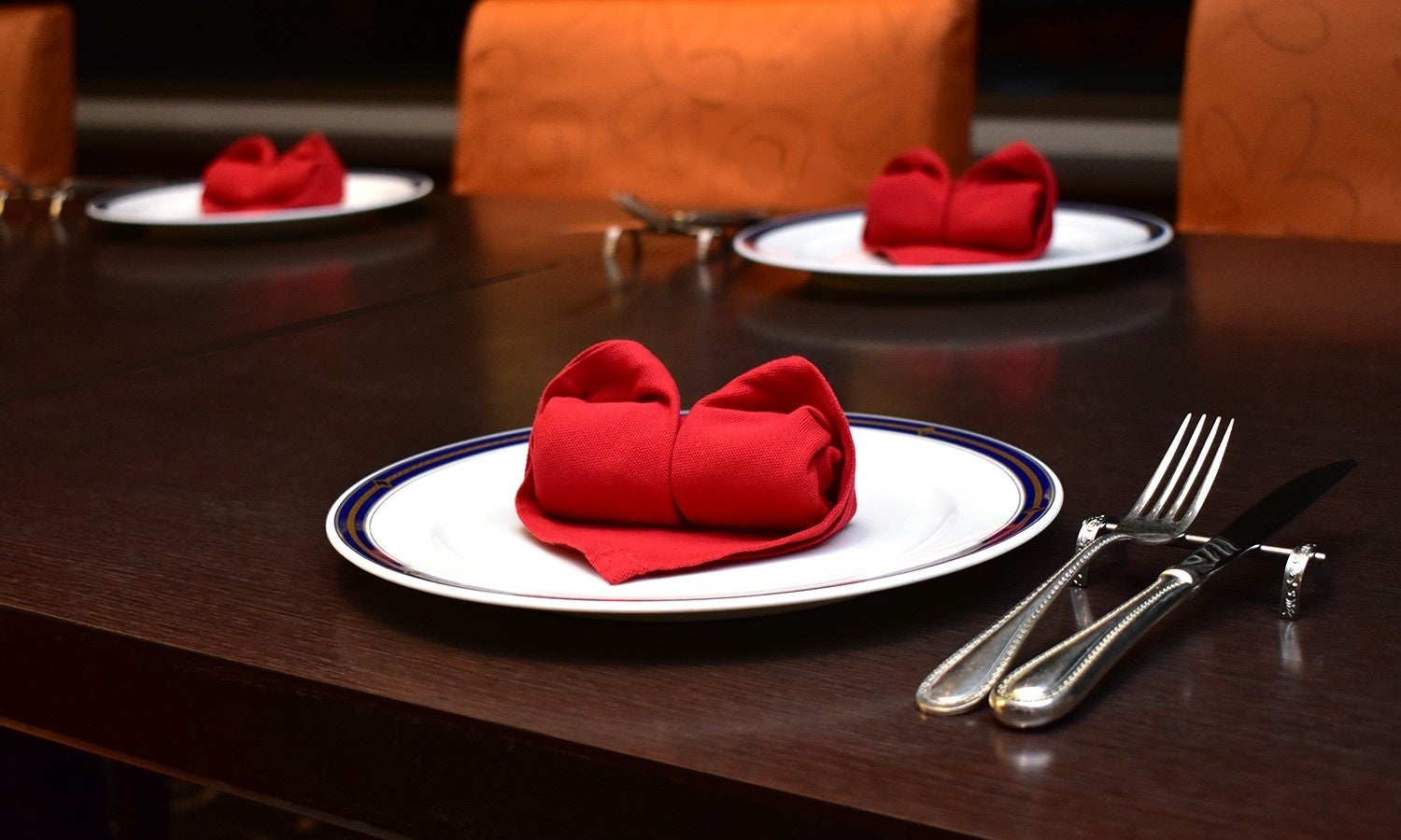 お食事は、フォトスポットとは別に、ハートのナプキンセットを設えたお席をご用意しております。