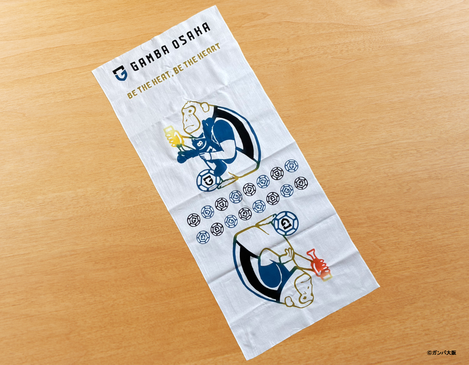 注染手ぬぐい「にじゆら」を展開する染工場ナカニ(大阪) 製作の「ガンバおさる」手ぬぐいをセットでお届けします。ここでしか手に入らない限定グッズです。