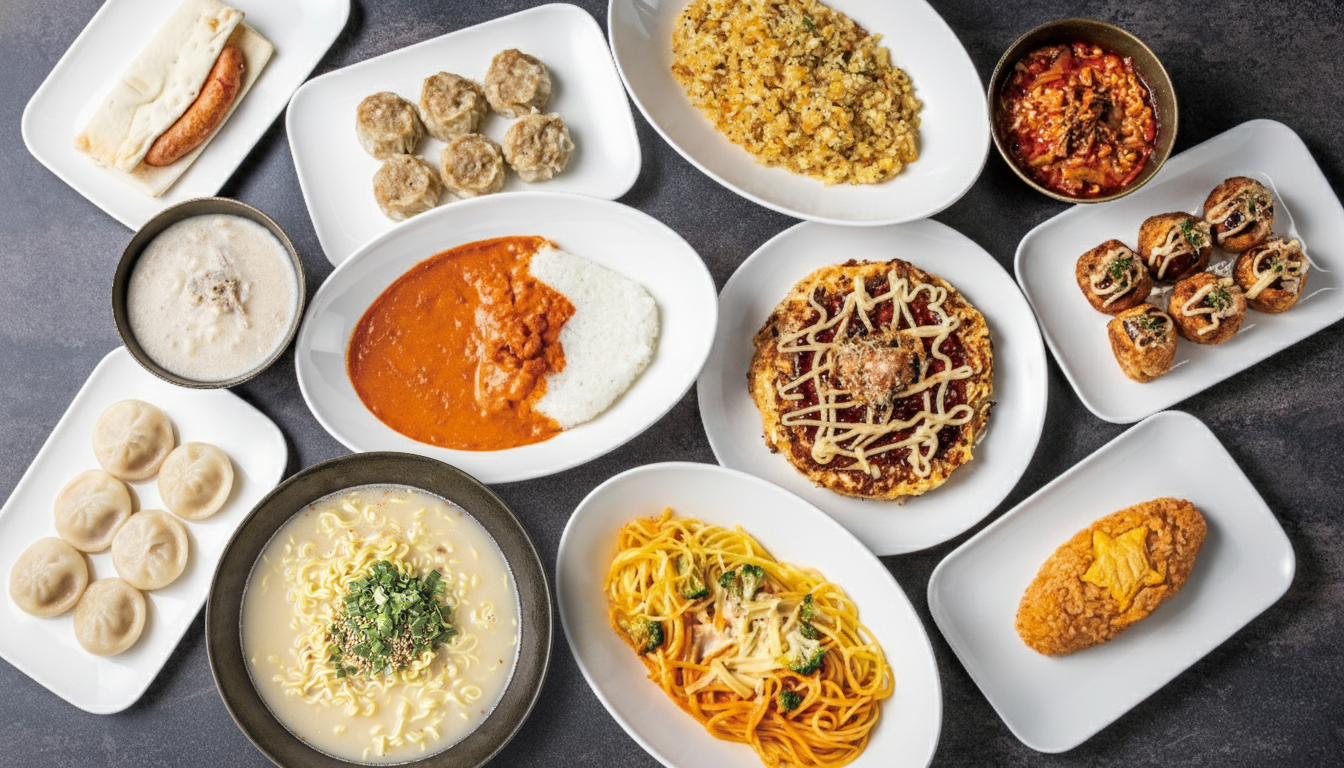 今回の食べ放題祭りでは、パスタやチャーハンといった定番メニューから、お好み焼き・たこ焼きなどの粉もの、本格的な点心、カレー、スープ、ラーメンまで、ジャンルを超えたラインナップが集結。厳選された20種類以上の高品質な冷凍食品・レトルト食品を100分間の食べ放題で堪能いただけます。