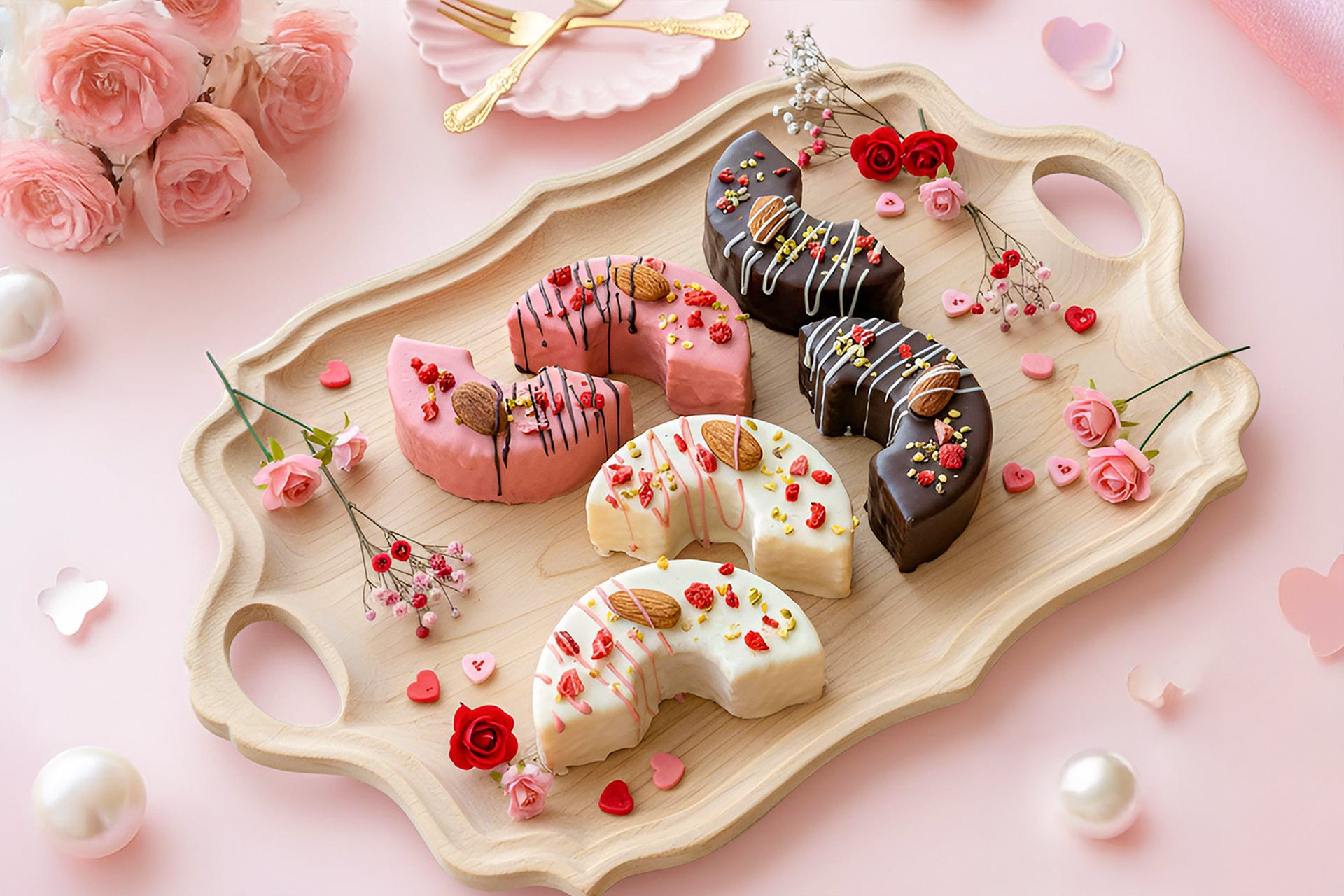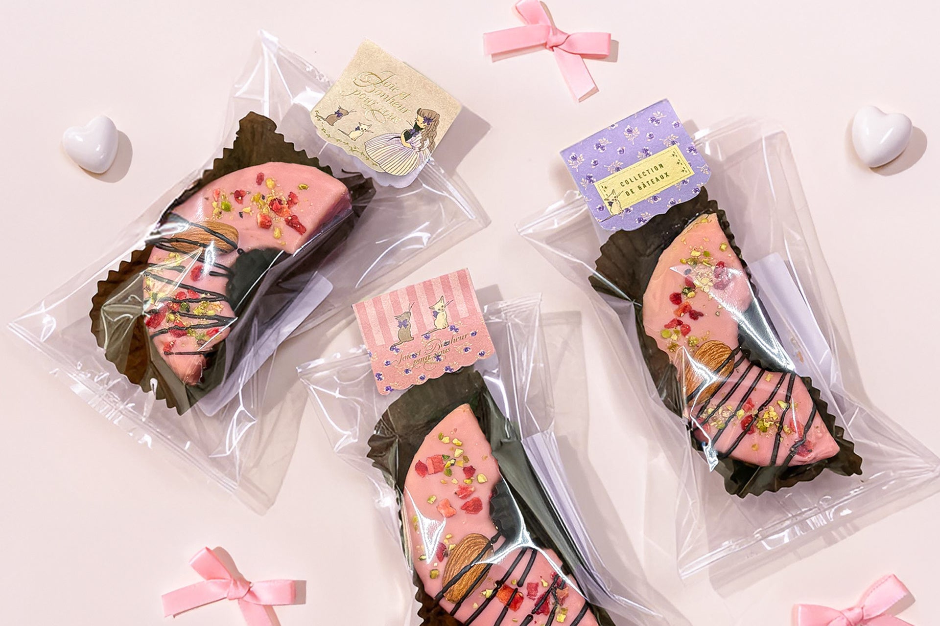 これまでナッツとフリーズドライ苺で仕上げていたデザインに、今年はピスタチオが新たに仲間入り。彩りと食感にアクセントが加わり、より華やかで、より“かわいい”バレンタイン仕様へと進化しました。