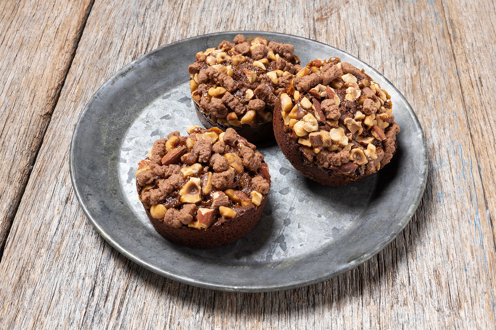 ミルクとダークの2種類のチョコレートを使って焼き上げた味わい深いキャラメル味のガトー・ショコラ。ショコラ生地にキャラメルとローストした3種のナッツ(アーモンド・ヘーゼルナッツ・くるみ)とショコラシュトロイゼルをのせて焼き上げました。