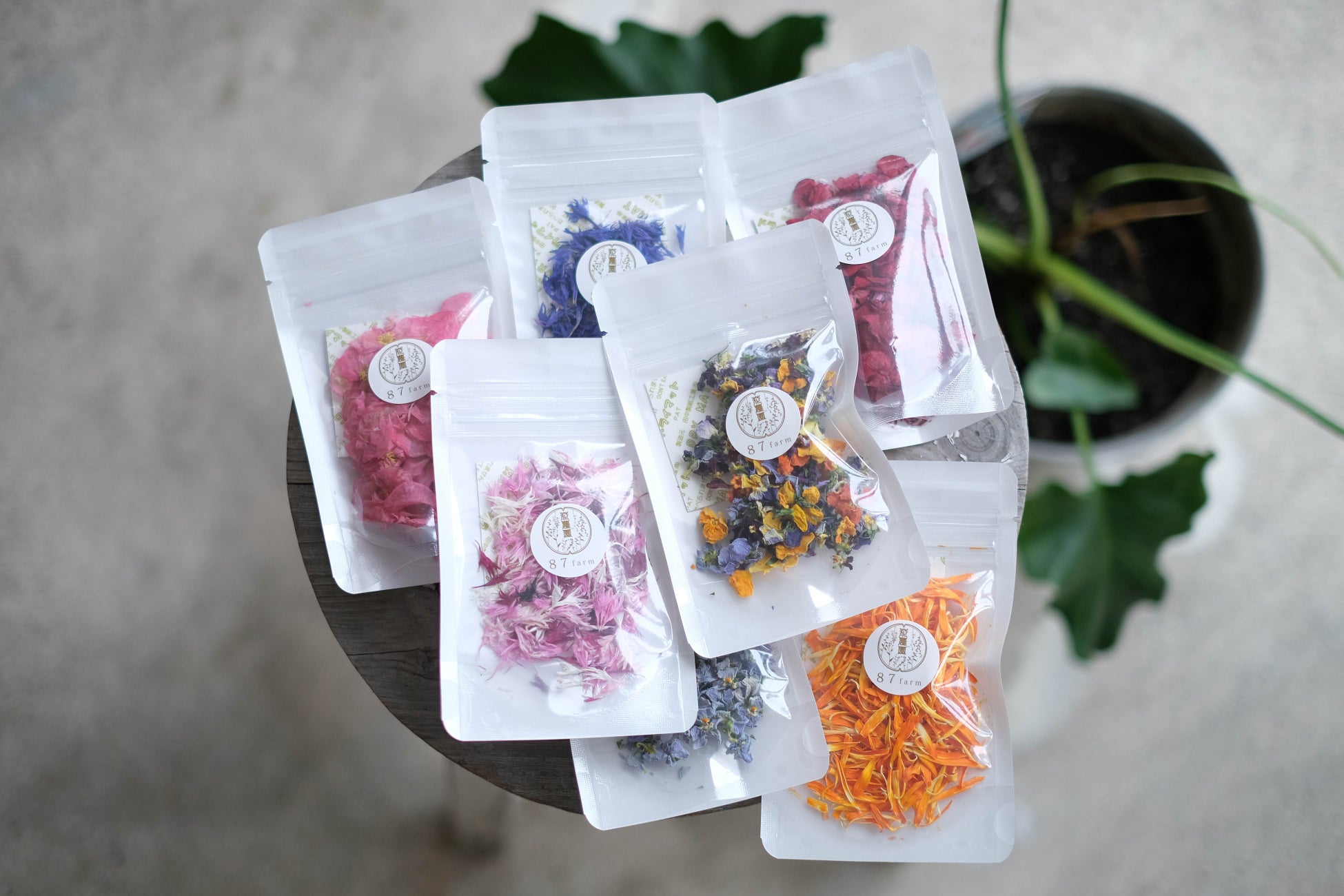 「食用花が気軽に使える世界を」食用花(エディブルフラワー)を専門に栽培から加工、商品開発まで一気通貫で取り組んでいる全国でも珍しいエディブルフラワー専門農園です。87farmでは農薬不使用で自社栽培した食用花を、花の色・形を損なわない独自の乾燥製法でドライエディブルフラワーを製造しています。お菓子や料理、ドリンク、装飾など幅広く活用できるよう、食の現場に向けて安定供給しています。ドライエディブルフラワーは楽天市場やAmazonより取り寄せていただき、全国でご利用いただいています。