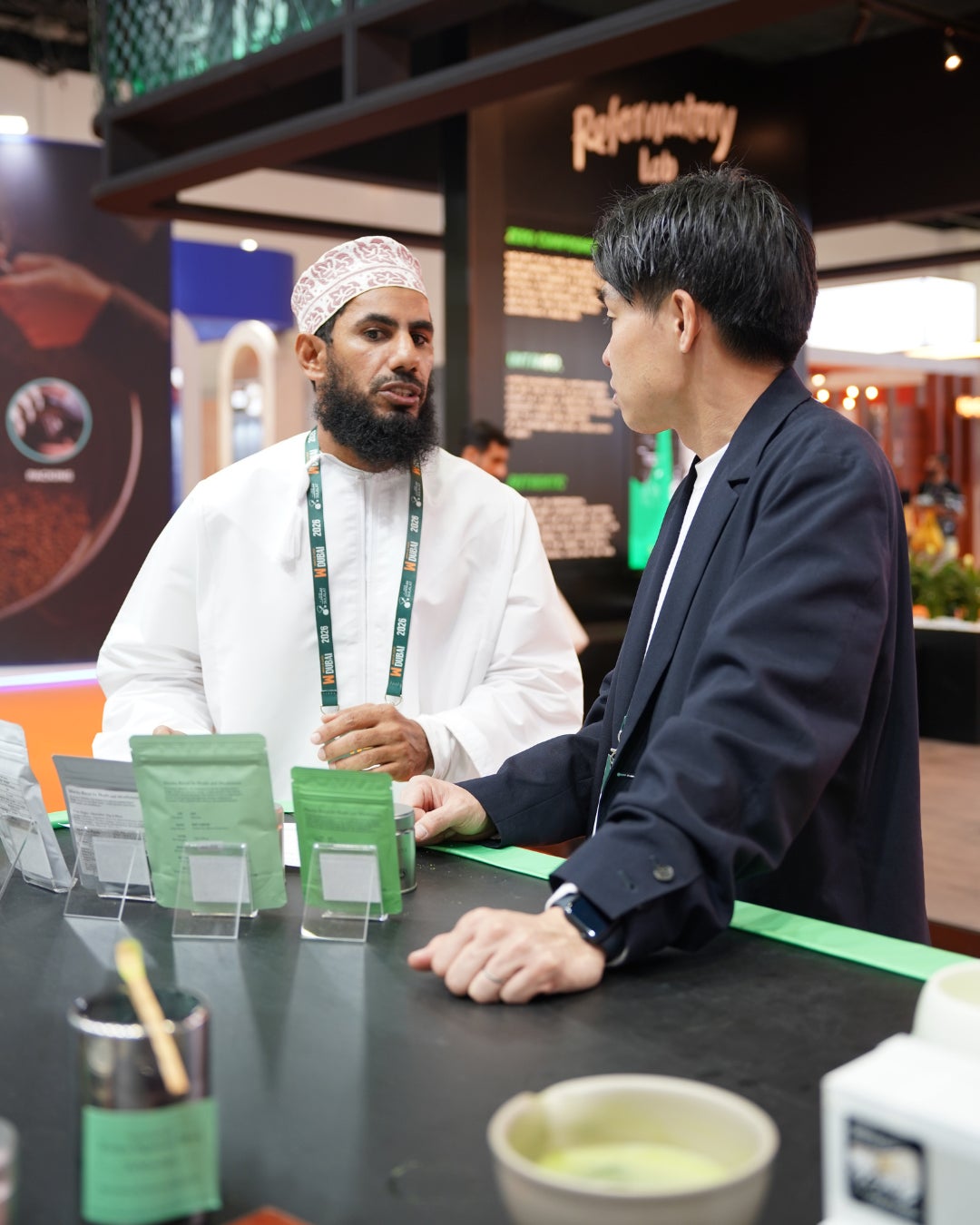 会場では、抹茶の品質や味わいに加え、中東地域ならではの提供方法や活用シーンについて、業界関係者との意見交換や商談を行いました。