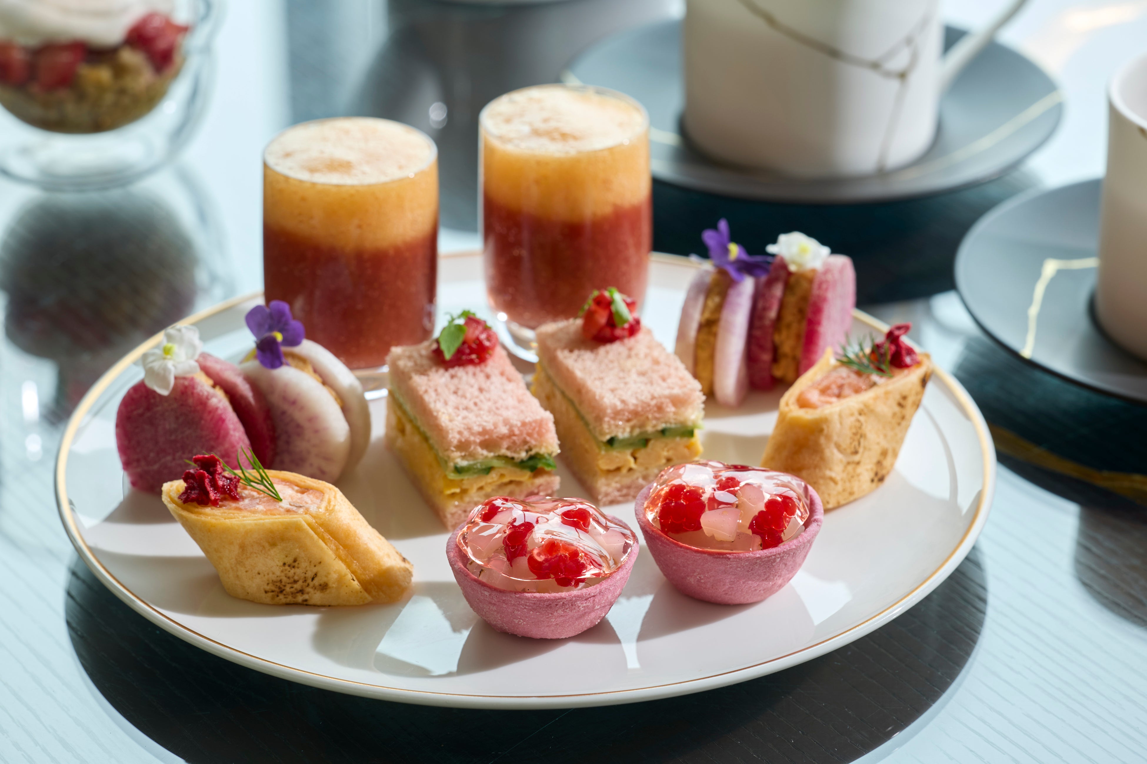 現在開催中のアフタヌーンティーでは、いちご尽くしのデザートやセイボリー、別添えでご提供するフレッシュないちごなどがご好評をいただいています。3月9日からは、その構成はそのままに、より多彩な表情のいちごをお楽しみいただける内容へとアップデート。デザートには抹茶や水まんじゅうなど、和のエッセンスを取り入れたラインナップをご用意します。ランチタイムのセイボリーには地元食材を取り入れ、ウェスティンホテル横浜らしい味わいを表現。ディナータイムには、お酒にも合うセイボリーに内容を変更して、お届けします。