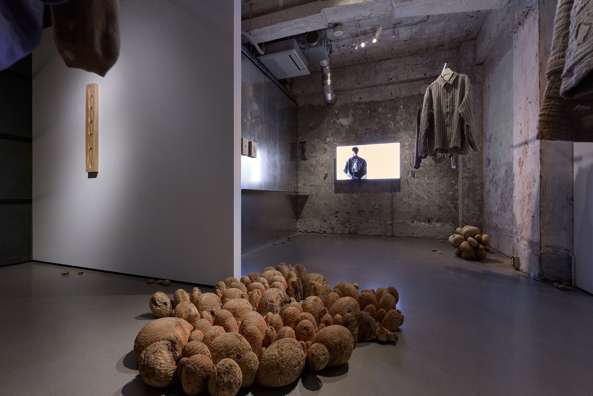 本展は、主に麻を使用した一点物の衣服を生み出すファッションブランド「CHNEIDER」の作品と、木という存在に寄り添い続ける彫刻家・髙山瑞の作品で構成されています。