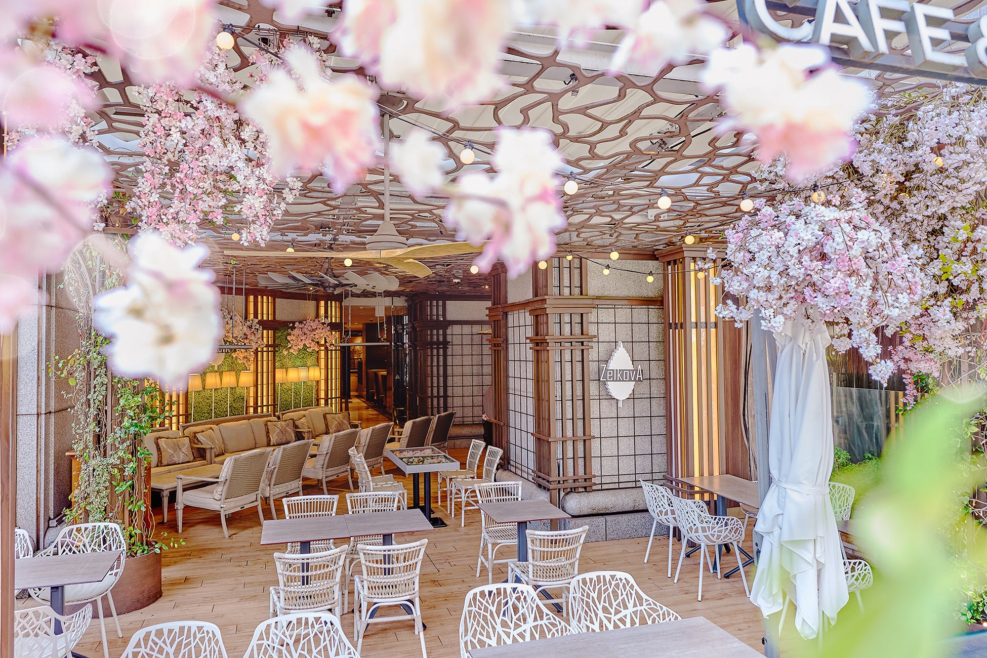 アート桜が咲き誇る表参道の華やかなテラスで、春を五感で楽しむティータイムを演出