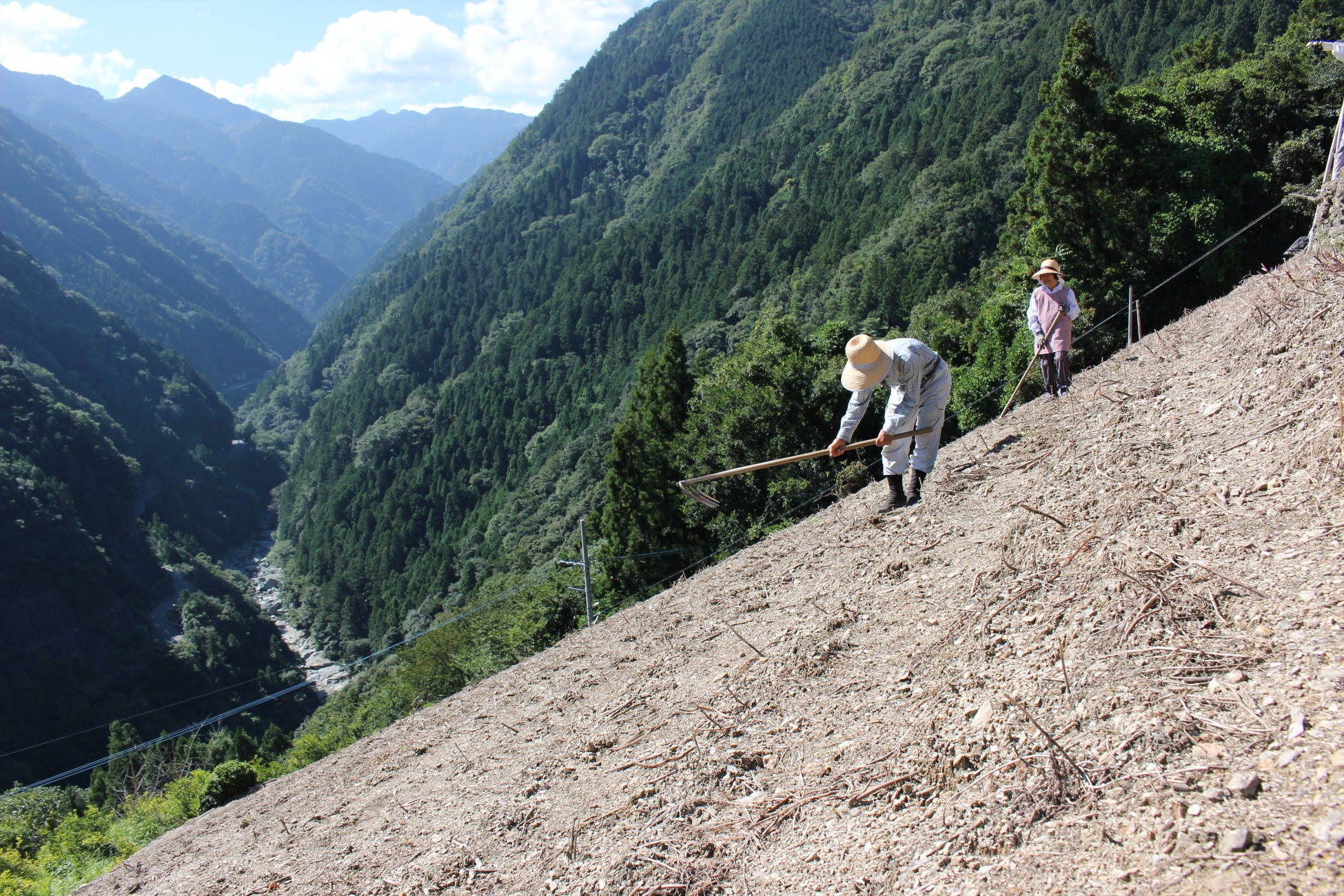 にし阿波地域の山間部に点在している集落は、いずれも急峻な傾斜地に位置し、場所によっては斜度40度にも及びます。