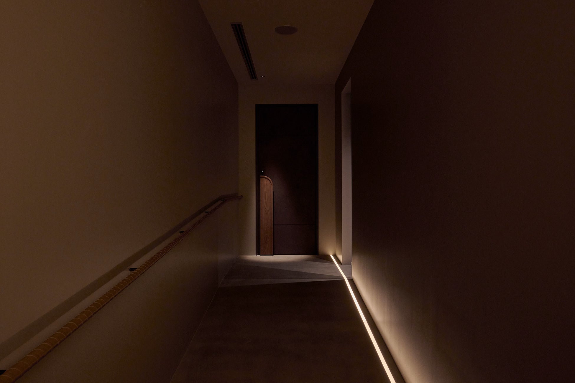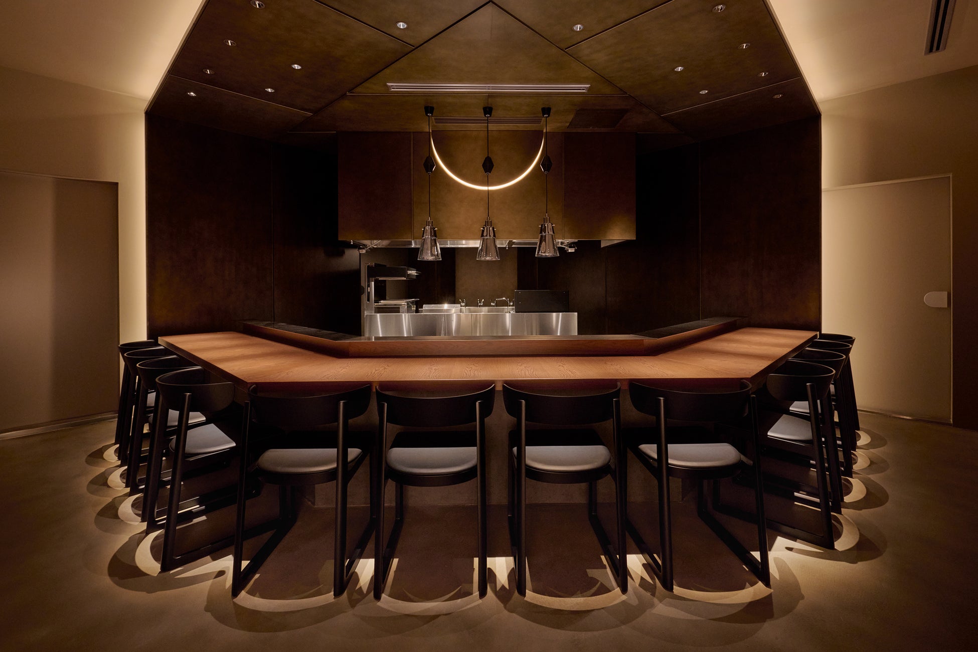 外光を遮断した空間や料理を照らすライティング。そして、料理の過程で立ち上る炭の煙が揺らぎと香りをもたらすことで、空間と食事が一体となり、深く感覚がひらかれていきます。