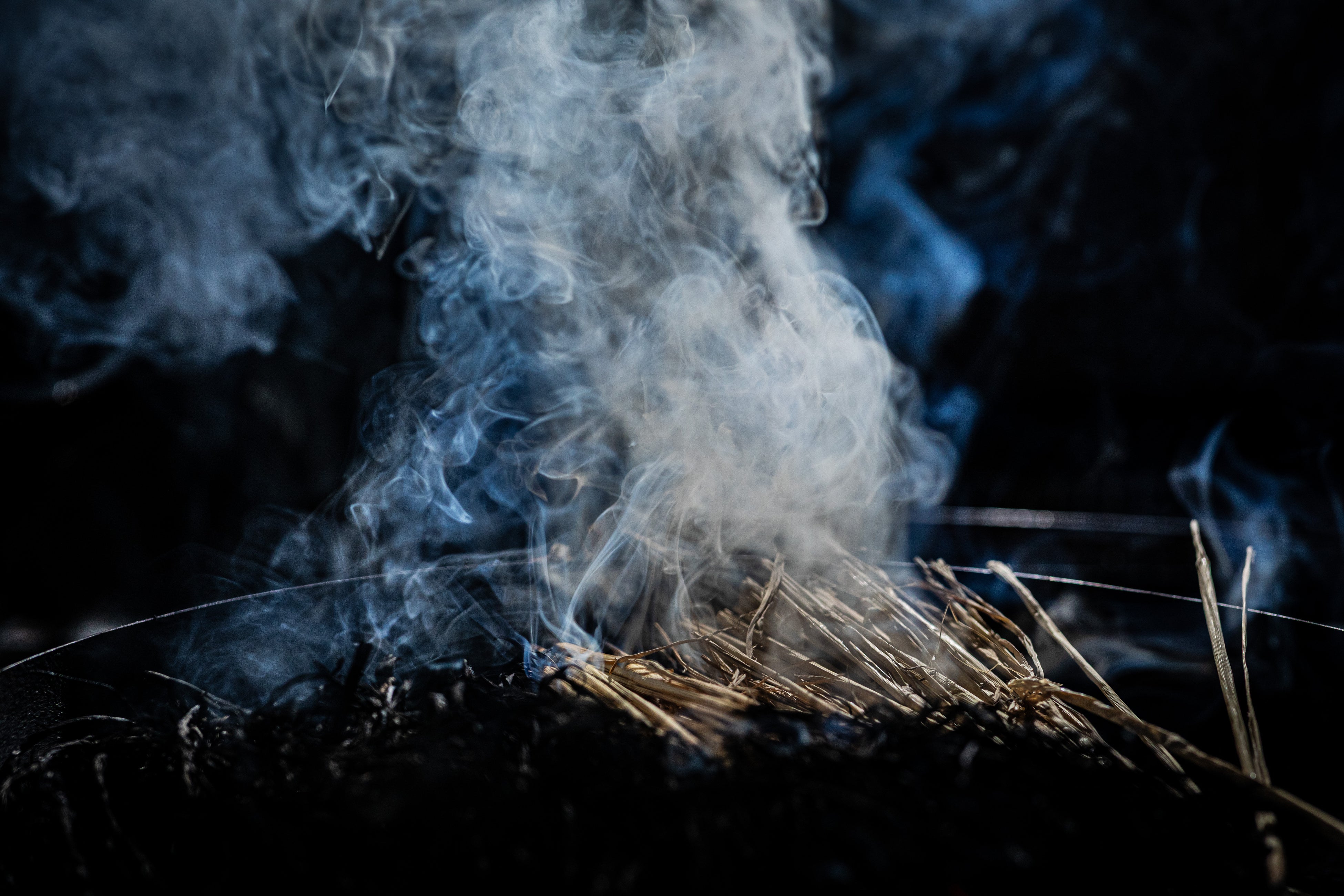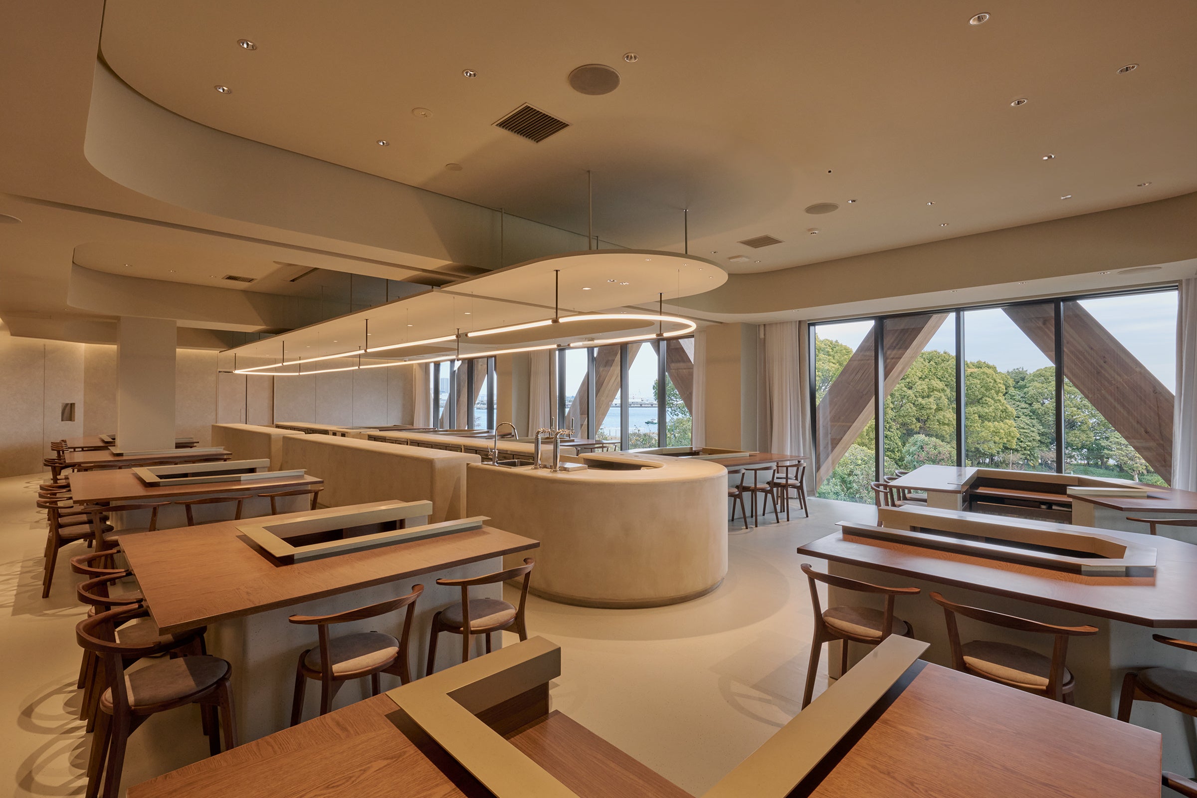 外光を遮断した空間や料理を照らすライティング。そして、料理の過程で立ち上る炭の煙が揺らぎと香りをもたらすことで、空間と食事が一体となり、深く感覚がひらかれていきます。