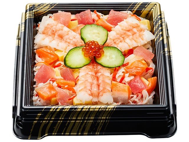お子さまに人気の玉子やかにカマで華やかに飾り付け、えびやいくらをお花のように仕上げました。お手頃なサイズ感ですので、いつものお寿司に添える「もう一品」としてぜひお楽しみください。