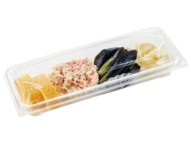 お子さまに人気の玉子やかにカマで華やかに飾り付け、えびやいくらをお花のように仕上げました。お手頃なサイズ感ですので、いつものお寿司に添える「もう一品」としてぜひお楽しみください。