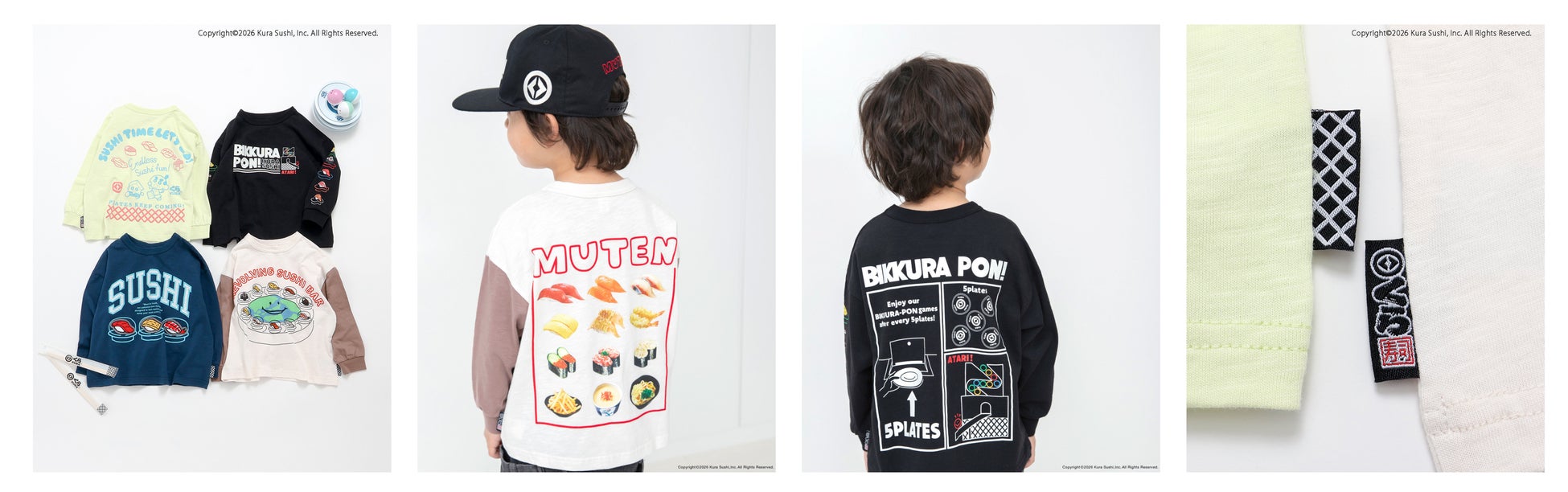 4色すべて異なるデザインで、くら寿司の世界観を詰め込んだTシャツ。