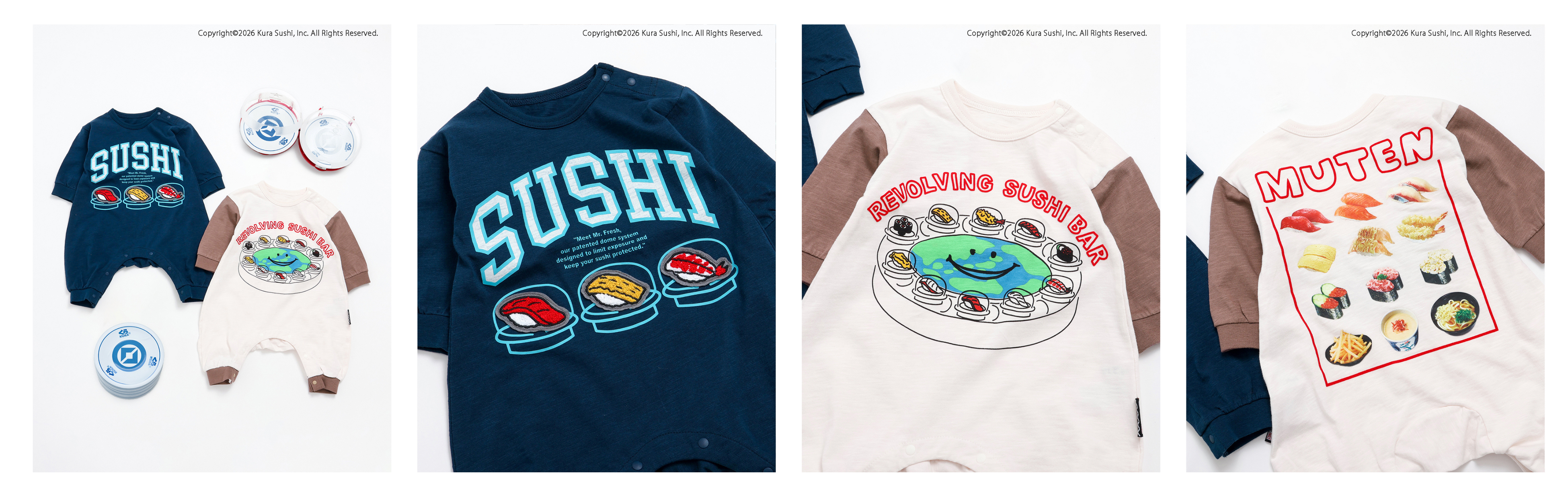 4色すべて異なるデザインで、くら寿司の世界観を詰め込んだTシャツ。