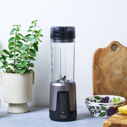 プロテインシェイクを外出先でも作れる「Votre FLEX コードレスタンブラーミキサー」は、外出先でも使える充電式のコードレスタンブラーミキサーです。本体からボトル部分を取り外すことでタンブラーとして持ち運べます。コードレスながら十分なパワーを備えており、本格的な調理にも対応します。