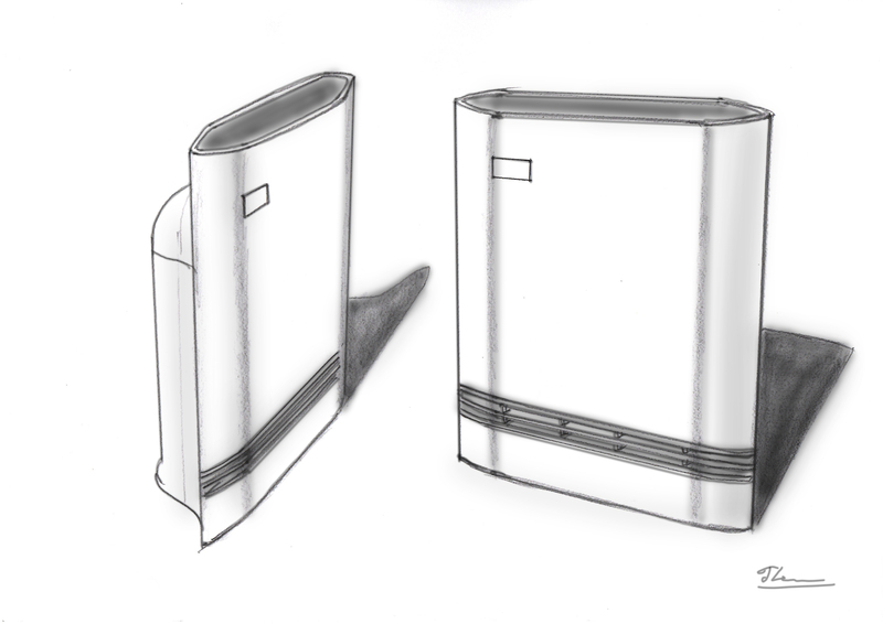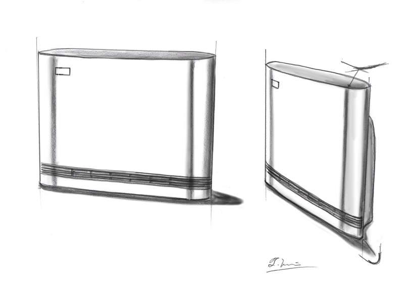 様々なアイデアのスケッチや3Dモデルを検討し、最終的にキッチンやリビング・ダイニング、デスクの上での使用用途に相応しい、シンプルかつソリッド感と一体感のあるフォルムにたどり着きました。