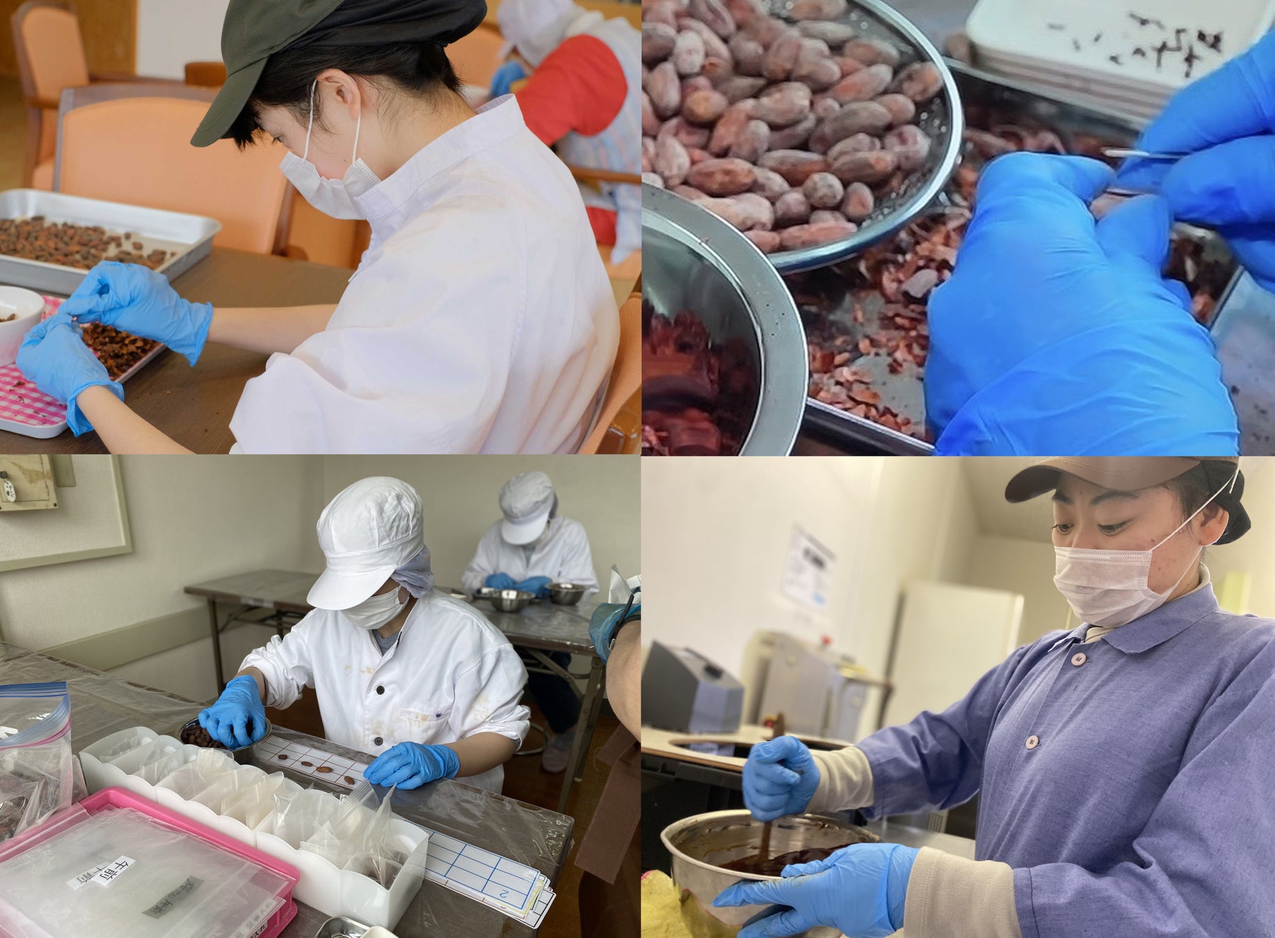 特に、雑味を生まないために欠かせない「カカオ豆の皮を一粒ずつ取り除く作業」は、丁寧さと集中力を強みとするメンバーが担っています。