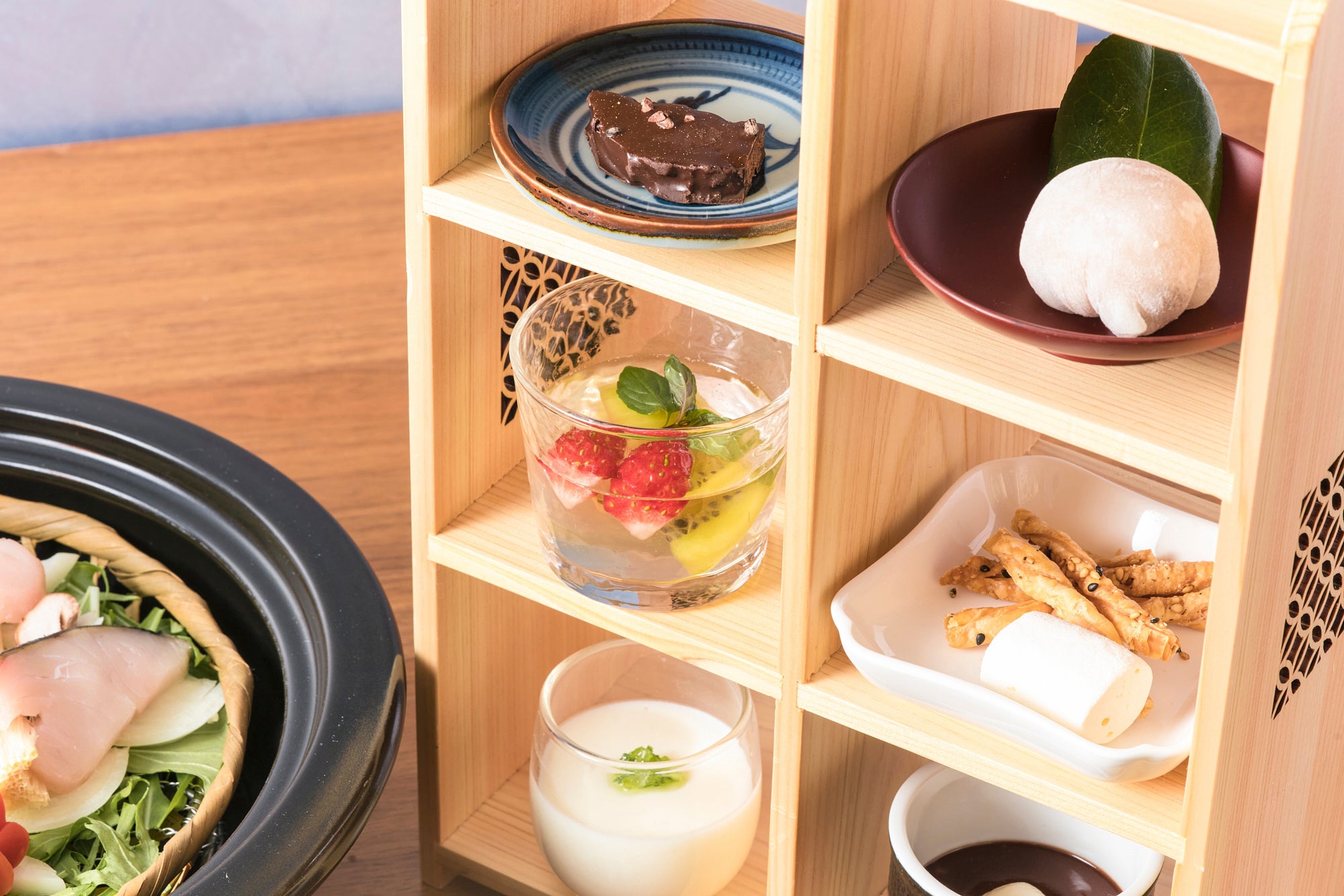セルリアンタワー東急ホテル(東京都渋谷区、総支配人 吉岡 慎一)の日本料理「Japanese Cuisine 桜丘」(2F)にて提供している「桜丘アフタヌーンティー」。お食事として楽しめる和のアフタヌーンティーとともに、お酒をお楽しみいただける2つの新プランを2月1日(日)より販売いたします。