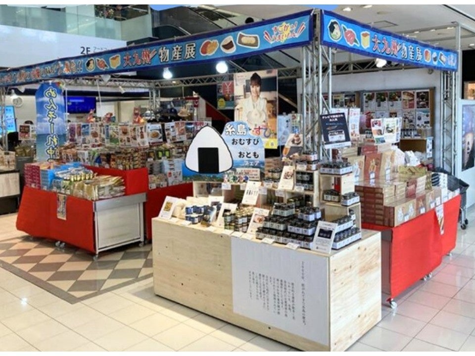 本物産展では、福岡県の名物「めんべい」や熊本県の「いきなり団子」など、九州・沖縄の各県を代表する銘菓や、重要無形文化財に指定されている伝統工芸品「久留米(くるめ)絣(がすり)」の帽子など、九州・沖縄地方の銘菓や名産品を250種以上取り揃えております。