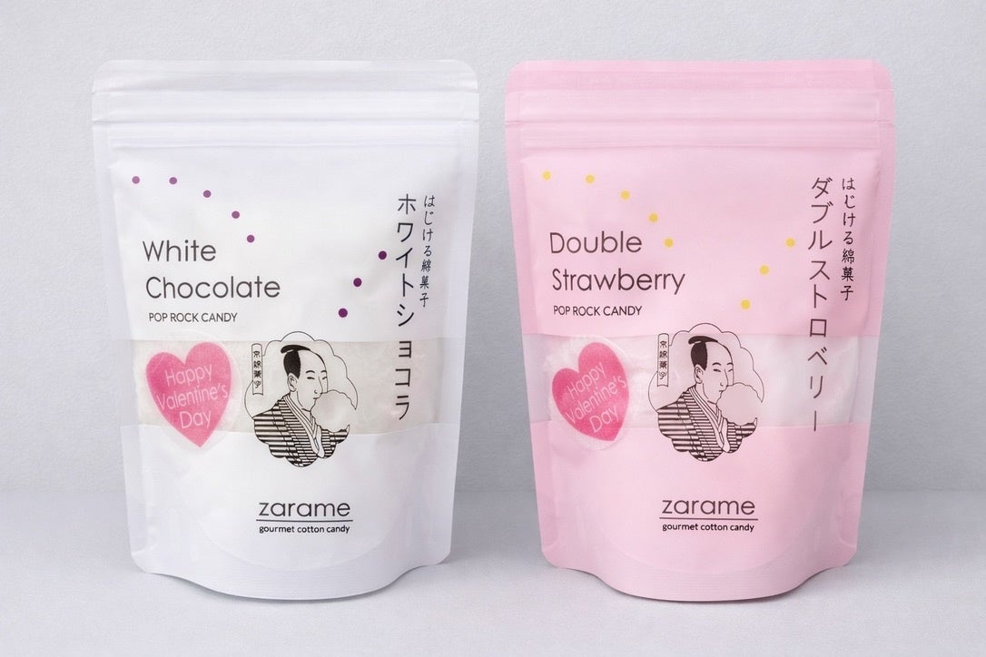 当店は、京都嵐山で2017 年に創業し、今年で創業8 年目になる京綿菓子専門店zarame(ザラメ)です。 当店は、現在、嵯峨嵐山本店と京都タワーサンド店、渋谷ヒカリエ shinQs 店の 3 店舗にて営業しており ます。この度、バレンタイン向け特別商品として、「はじける綿菓子」を2 種類限定発売いたします。「は じける綿菓子ダブルストロベリー」は、ストロベリーチョコでコーティングされたお口の中でパチパチは じけるザラメとドライストロベリーパウダーのかかった綿菓子をミックスした商品です。「はじける綿菓 子ホワイトショコラ」は、ホワイトチョコでコーティングされたお口の中でパチパチはじけるザラメとホ ワイトチョコパウダーのかかった綿菓子をミックスした商品です。大切な方への贈り物に、自分へのご褒 美として、今年の特別なバレンタイン、当店の「はじける綿菓子」で、はじけるような恋、しませんか?