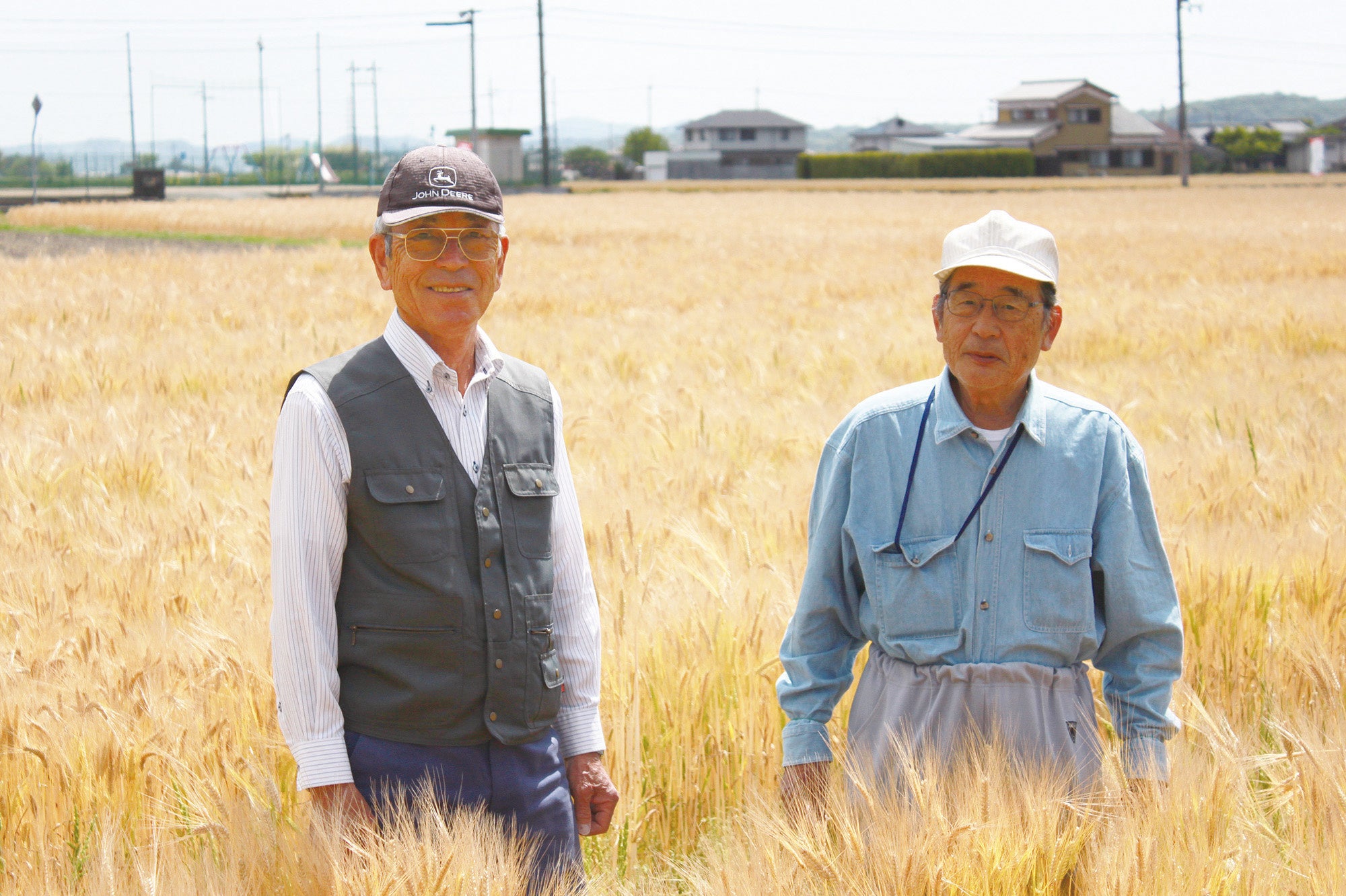 マルヤナギが2013年からもち麦を使った商品開発をスタートした頃、市場に流通しているもち麦の多くは海外産でした。国産もち麦原料を自ら開発しようと、もち麦を作ってくださる農家さんを探し、 加東市に本拠を置くJA みのりの協力を得て 、2017 年秋からもち麦栽培が始まりました。 2020年には、加東市内の作付け面積は約100haに増え、2021年には西脇市、多可町に栽培地を拡大。現在では、全体で約160haでのもち麦栽培を行っています。元々水稲の栽培が主な土地で、コメの裏作としてシロガネコムギを作っているところがありましたが、収穫時期と田植え時期が重なることがデメリットとなっていました。収穫がシロガネコムギより2週間早いもち麦の栽培は生産者の大きなメリットとなり、もち麦の栽培が一気に拡がりました。また、水稲と二毛作ができることから、収入がプラスオンになることも、生産者のメリットとなっています。例年5月下旬の収穫期には、黄金色に輝くもち麦畑が市内に広がる美しい風景が楽しめる他、もち麦を使用したパンや料理、菓子が市内外で広がるなど、新たな市の特産品として普及が進んでいます。