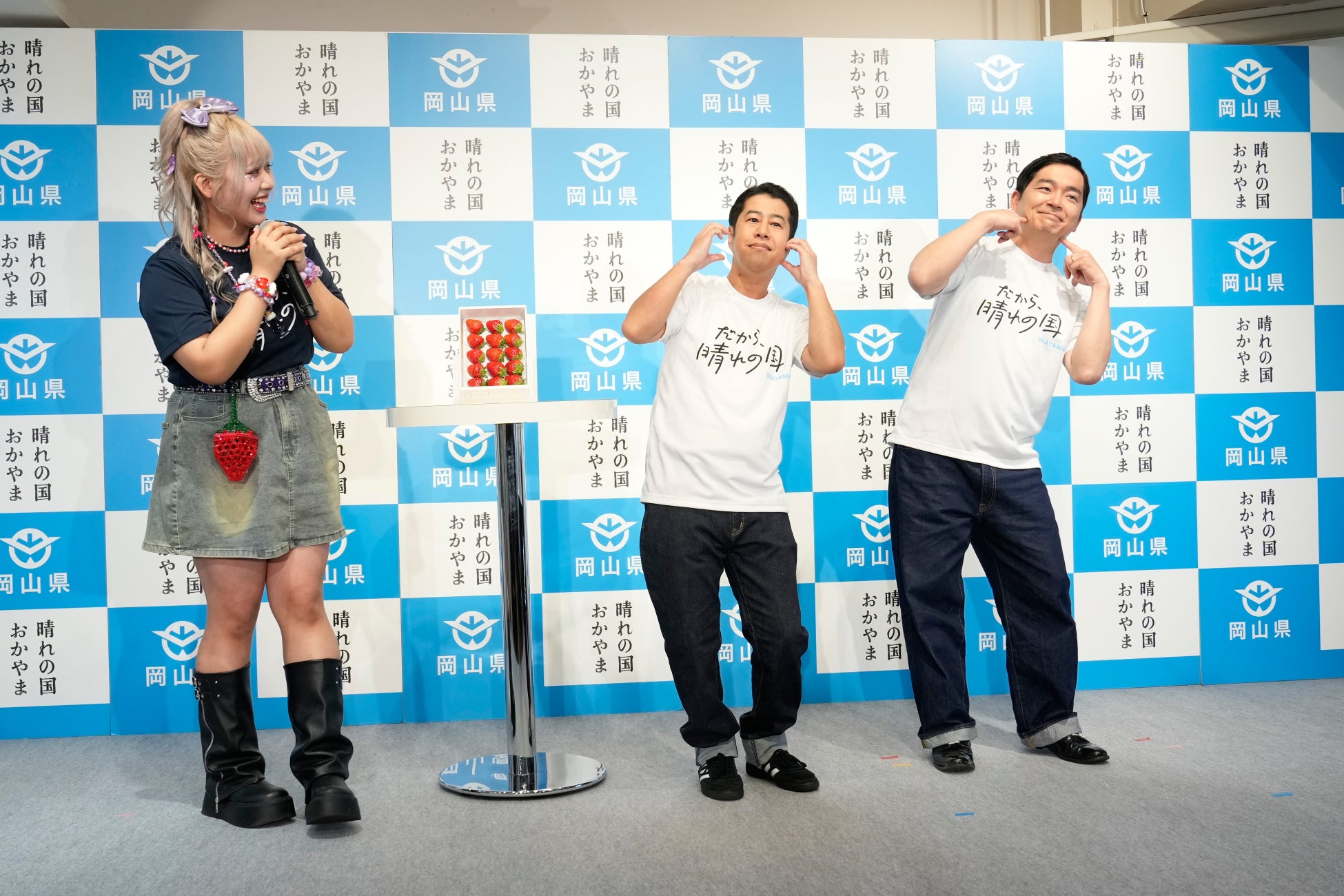 岡山県はこの度、晴苺を使用したスイーツフェア「晴苺スイーツフェア2026」を東京・新橋にあるアンテナショップ「とっとり・おかやま新橋館」2階レストラン「ももてなし家」をはじめとした3つの店舗で開催。「ももてなし家」では、2026年1月29日(木)~2月23日(月・祝)の期間で晴苺スイーツ4品を提供しています。これに伴い、初日の1月29日(木)に記者発表会を実施。コンビ揃って岡山県出身のウエストランドに加え、同県出身の人気インフルエンサー・りーちむさんがゲストとして登壇。「おかやま晴れの国大使」の座をかけたダンス対決や、りーちむさん監修の特製パフェの試食などを通じて「晴苺」の魅力を発信しました。