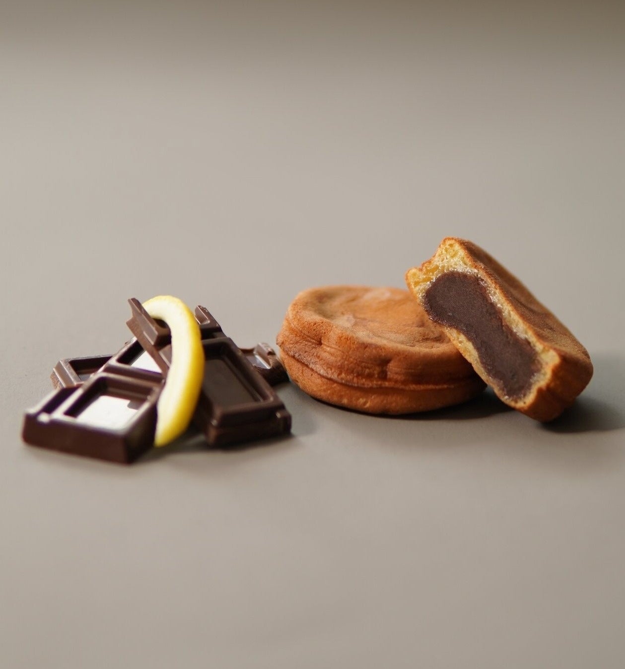 ◆ショコラレモン・・・芳醇なカカオ香る深いビターな味わいのチョコあんに、爽やかなレモンピールをプラス。