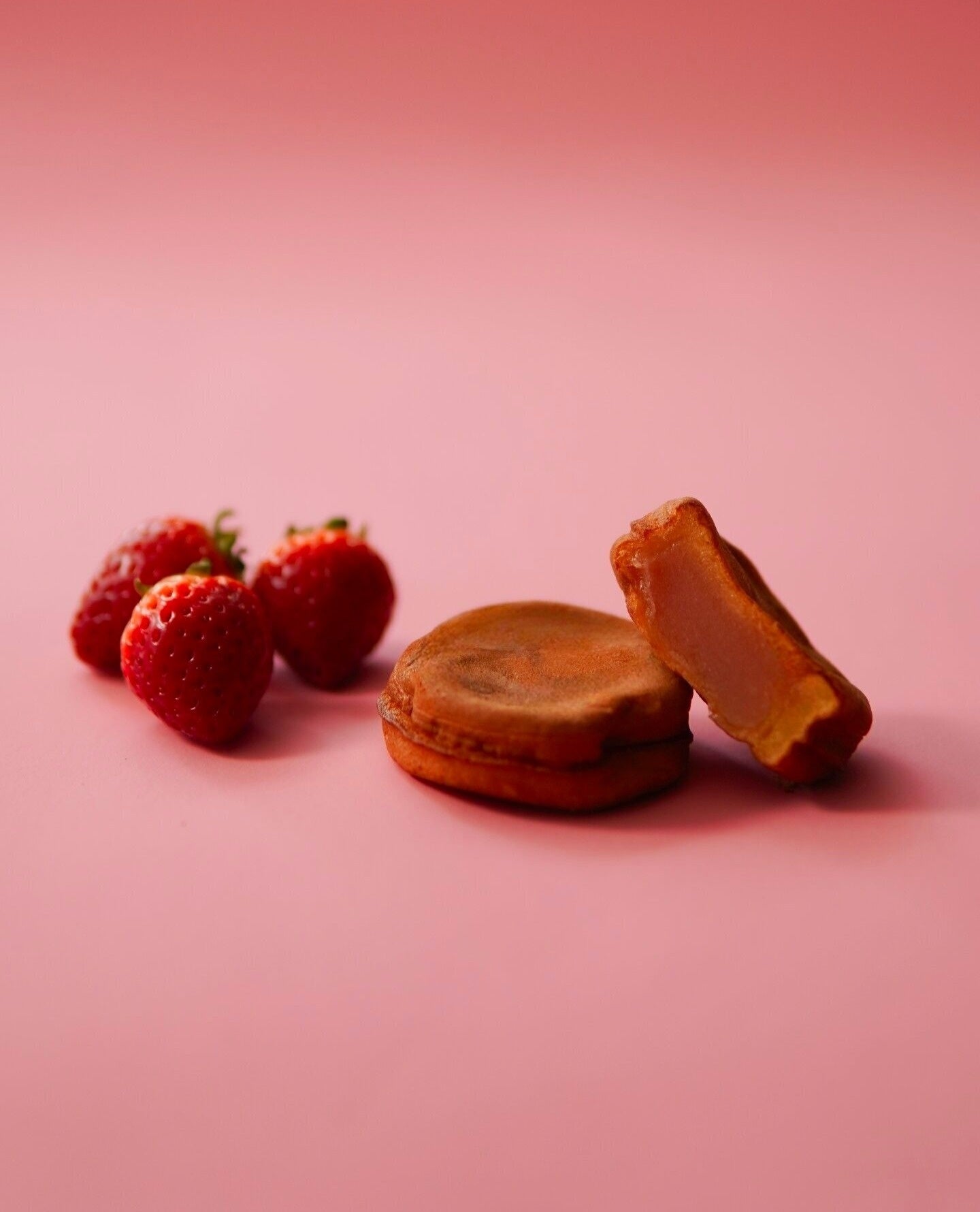 ◆つぶつぶいちご・・・いちごを丸ごと絞ったピューレ入りの甘酸っぱいあんは、いちごのつぶつぶ感がアクセント。