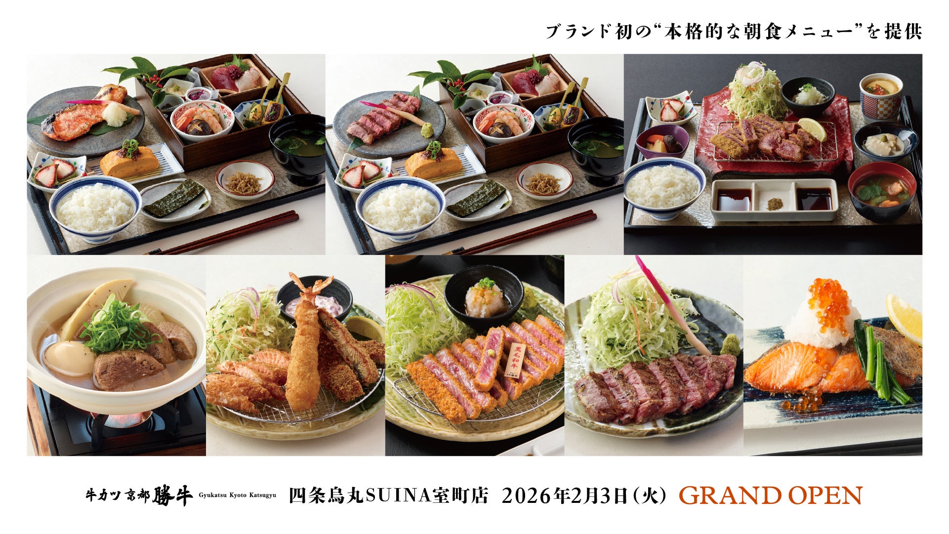 牛カツ専門店「牛カツ京都勝牛」を展開する株式会社京都勝牛(本社:京都府京都市)は、2026年2月3日(火)、四条烏丸エリア初出店となる「牛カツ京都勝牛 四条烏丸SUINA室町店」をグランドオープンいたします。