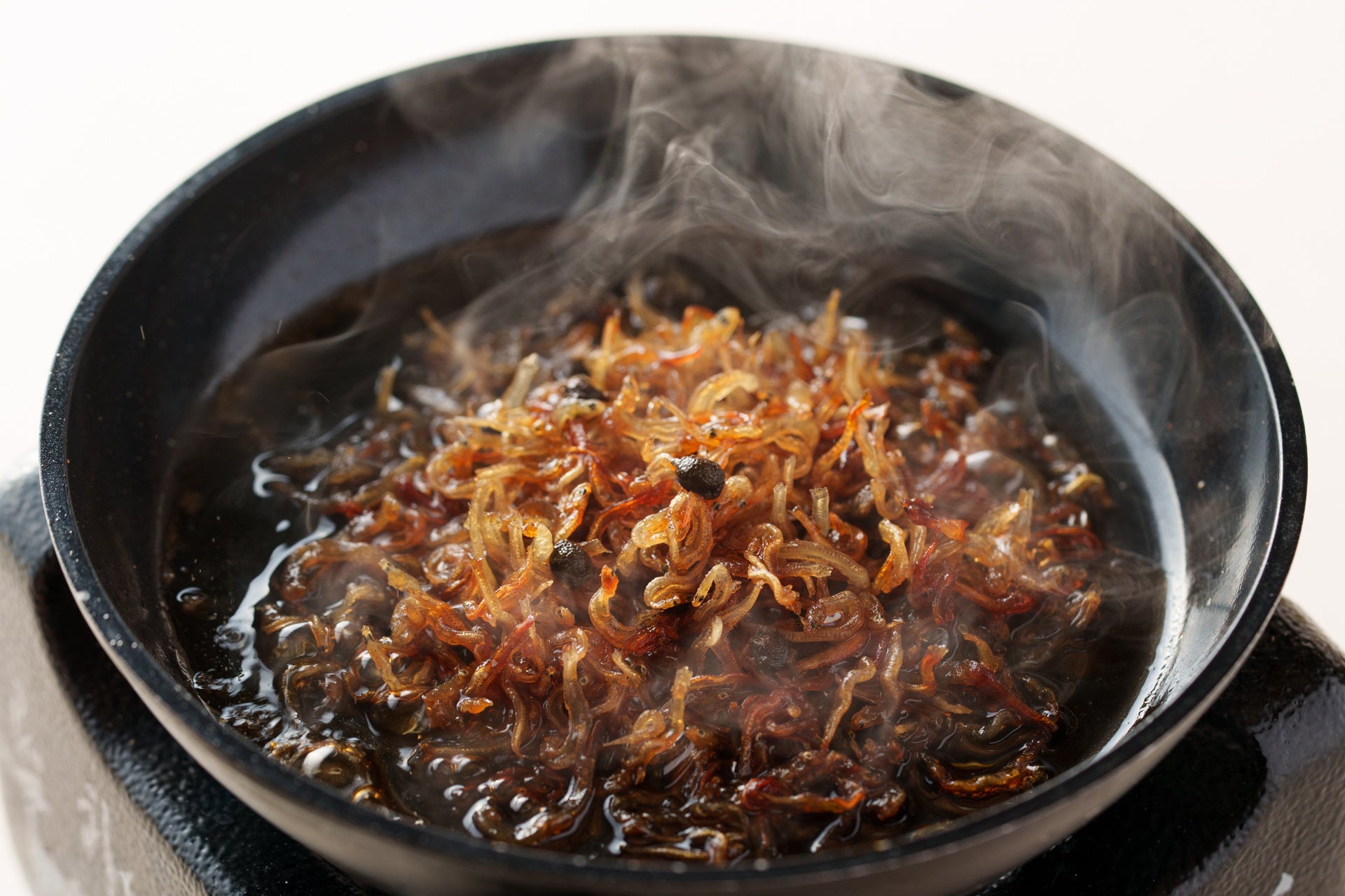 さらにその「ちりめん山椒」は、あらかじめ完成された状態で提供するのではなく、卓上の鉄板を使ってお客様自身が仕上げる体験型メニューとしてご提供します。