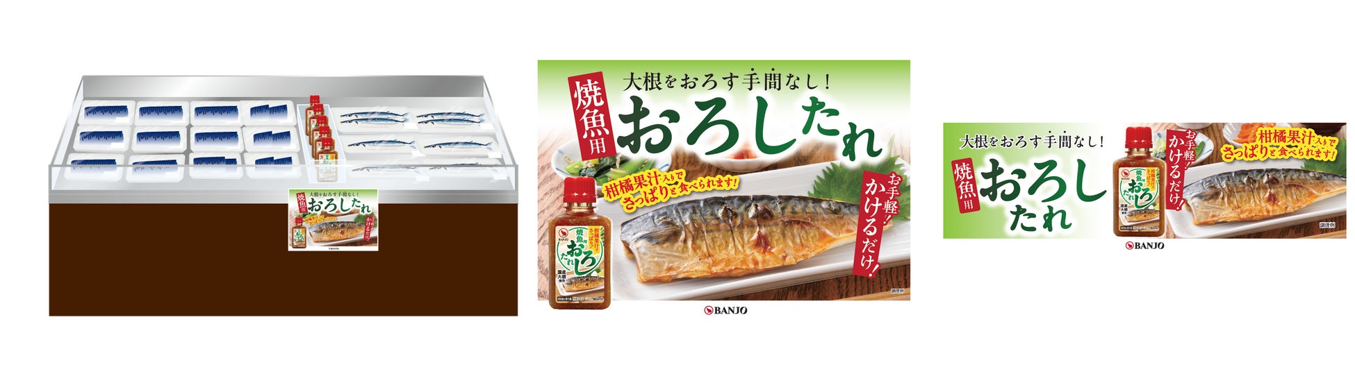 魚売場に隣接して展開することで、「大根おろしを用意する」「柑橘を切る」といった手間を省き、生活者の焼魚購入時の“味付け・薬味の悩み”をその場で解消します。