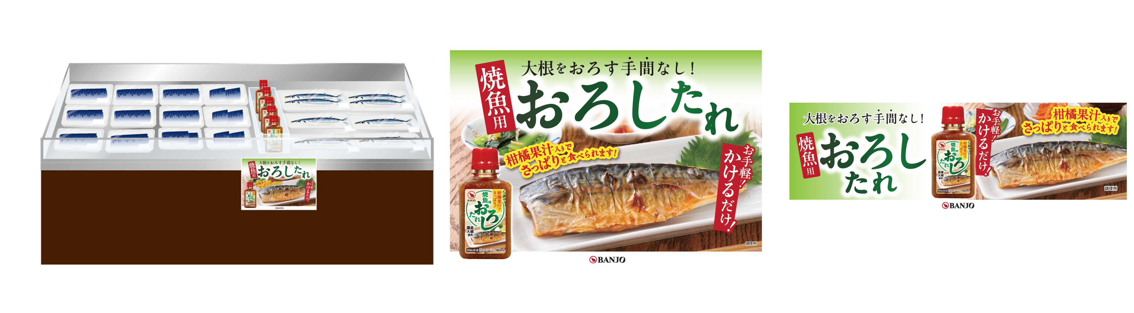 魚売場に隣接して展開することで、「大根おろしを用意する」「柑橘を切る」といった手間を省き、生活者の焼魚購入時の“味付け・薬味の悩み”をその場で解消します。